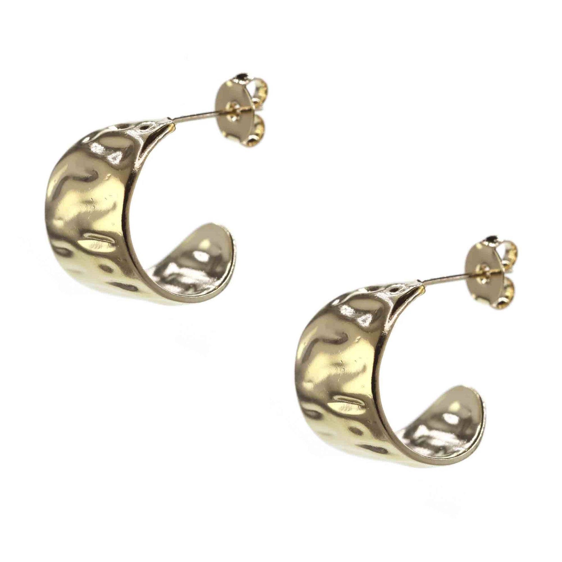Aros Enchapados en Oro Argollas Estilo Bote Irregulares con Textura. Tamaño 17 mm.
