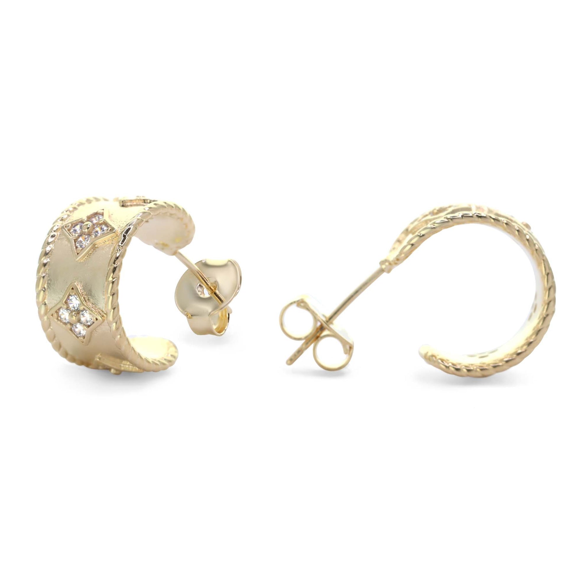 Aros Enchapados en Oro Argollas Semi Abierto Enmarcado de Estrella con Circones