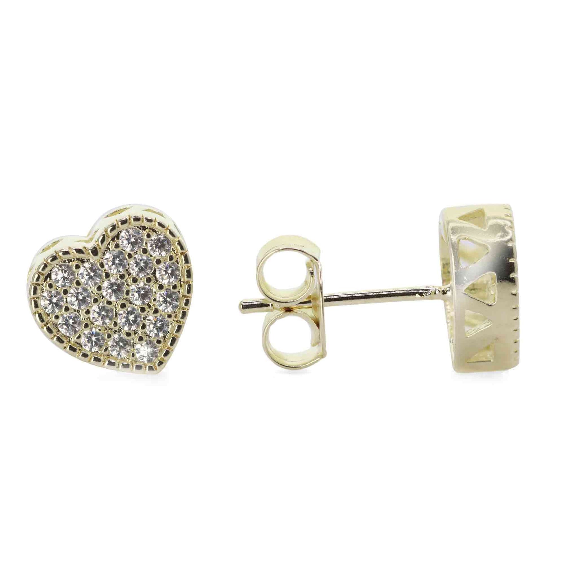 Aros Enchapados en Oro Corazones con Circones. Tamaño 9 mm.