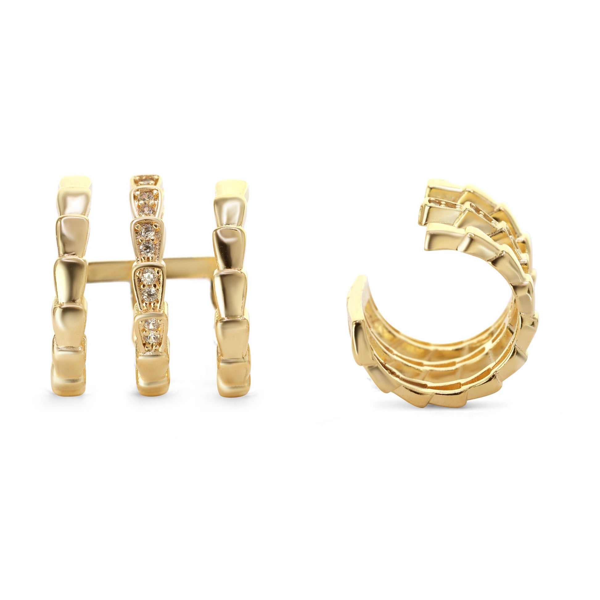 Aros Enchapados en Oro Cuff Triple con Circones.