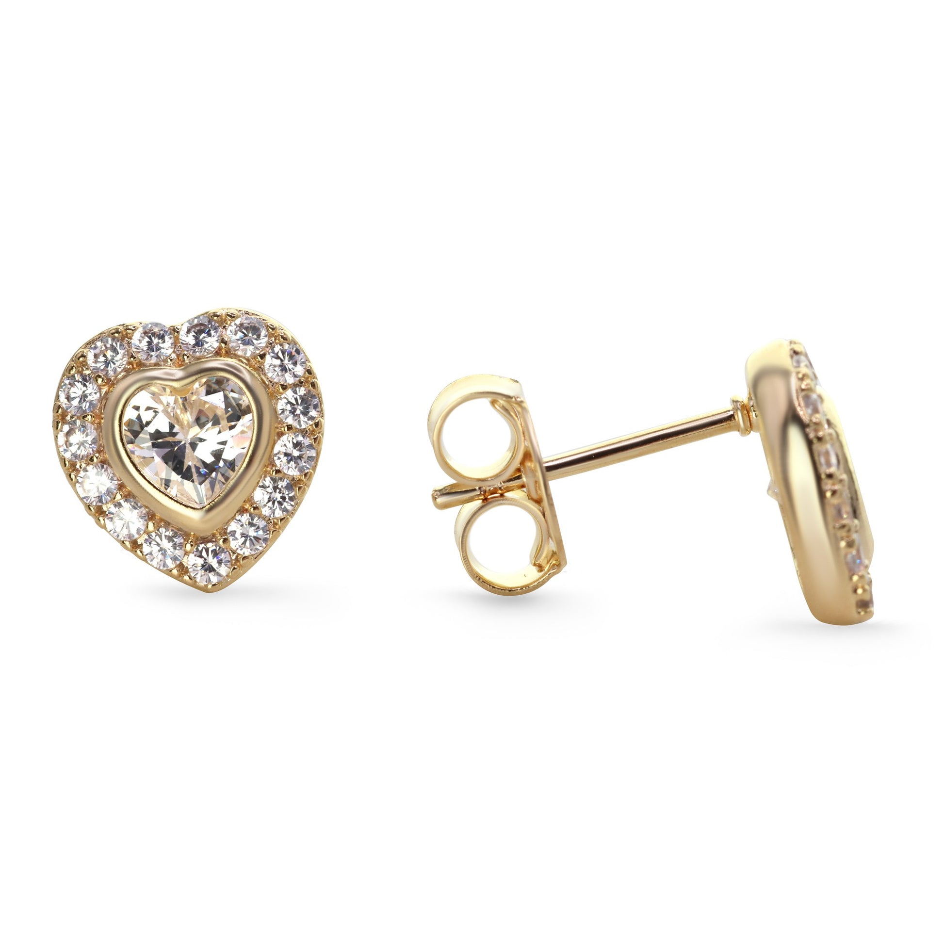 Aros Enchapados en Oro Diseño Corazón con Circones. Tamaño 1 cm.
