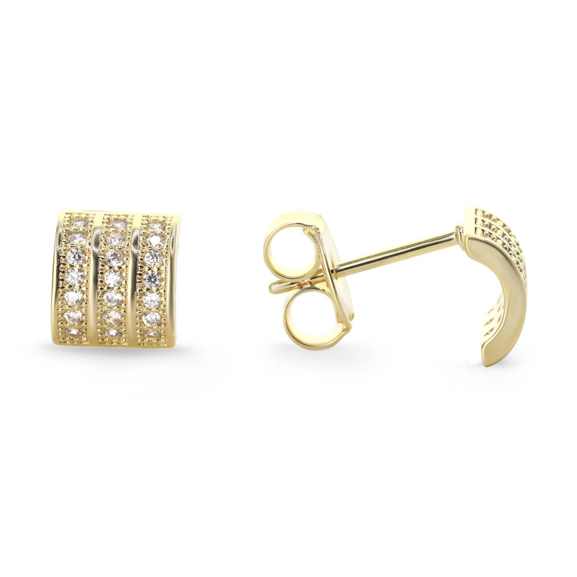 Aros Enchapados en Oro Diseño Curvo con Serie de Circones