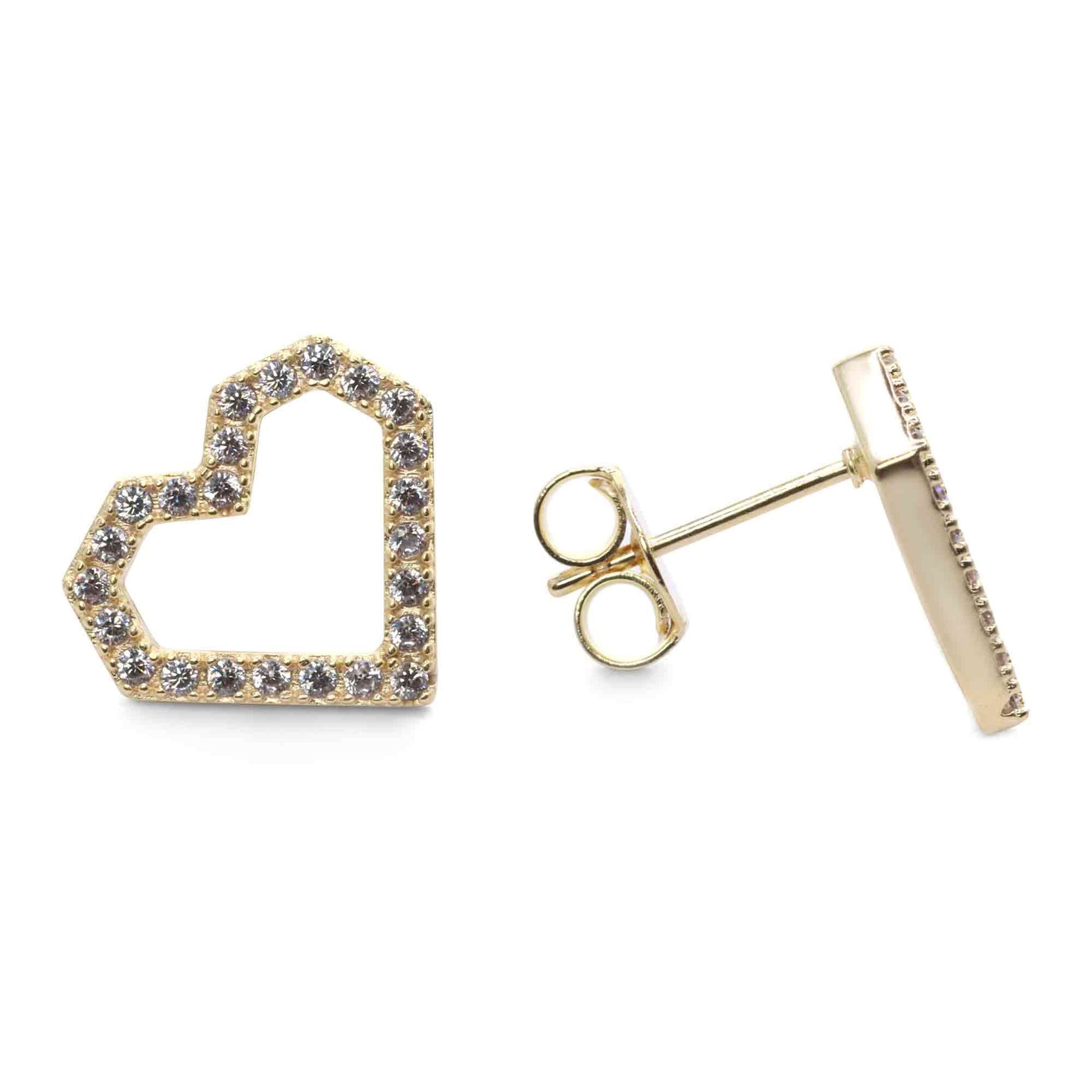 Aros Enchapados en Oro Diseño de Corazón con Circones
