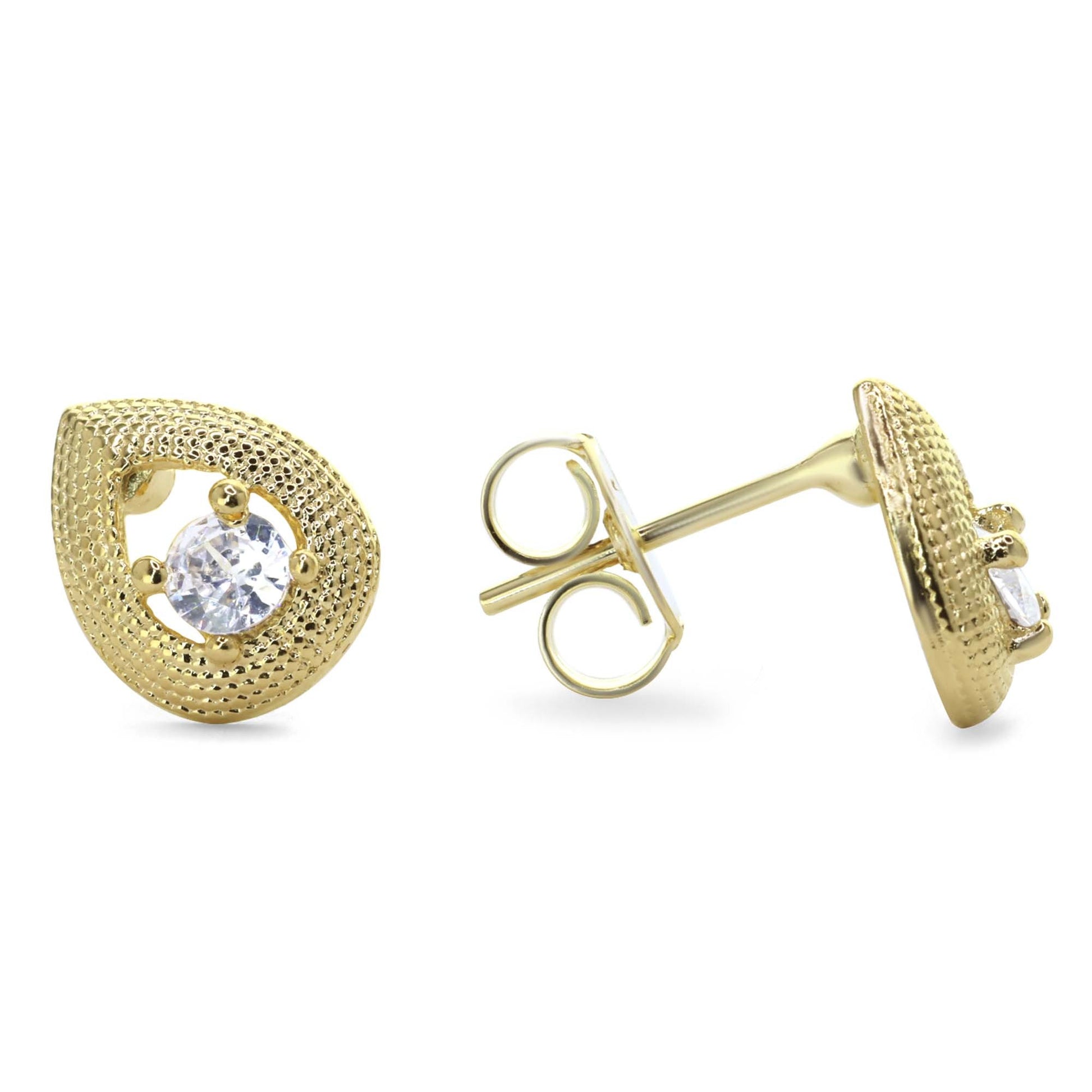 Aros Enchapados en Oro Diseño Gota con Textura y Circón