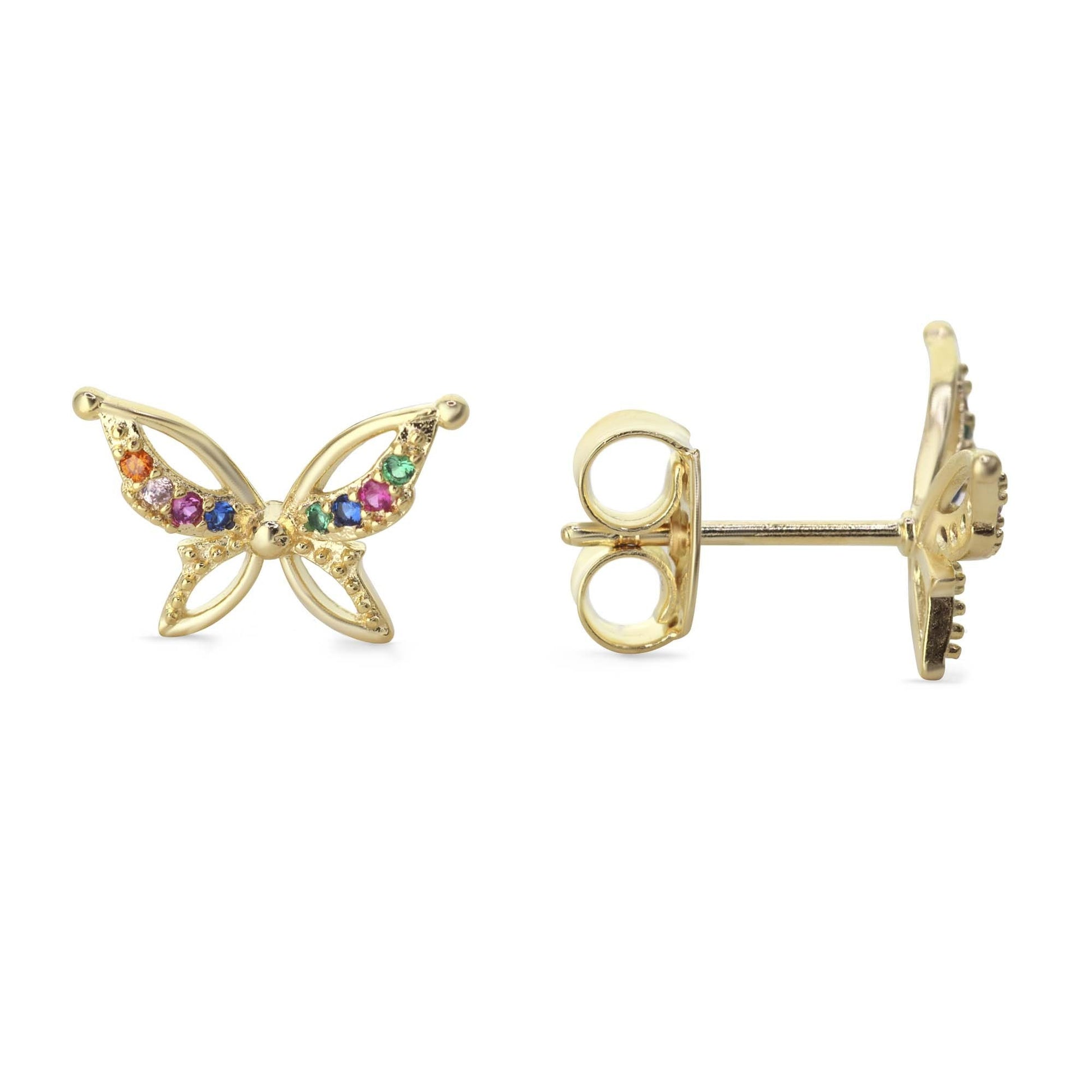 Aros Enchapados en Oro Diseño Mariposa Calada de Circones de Colores