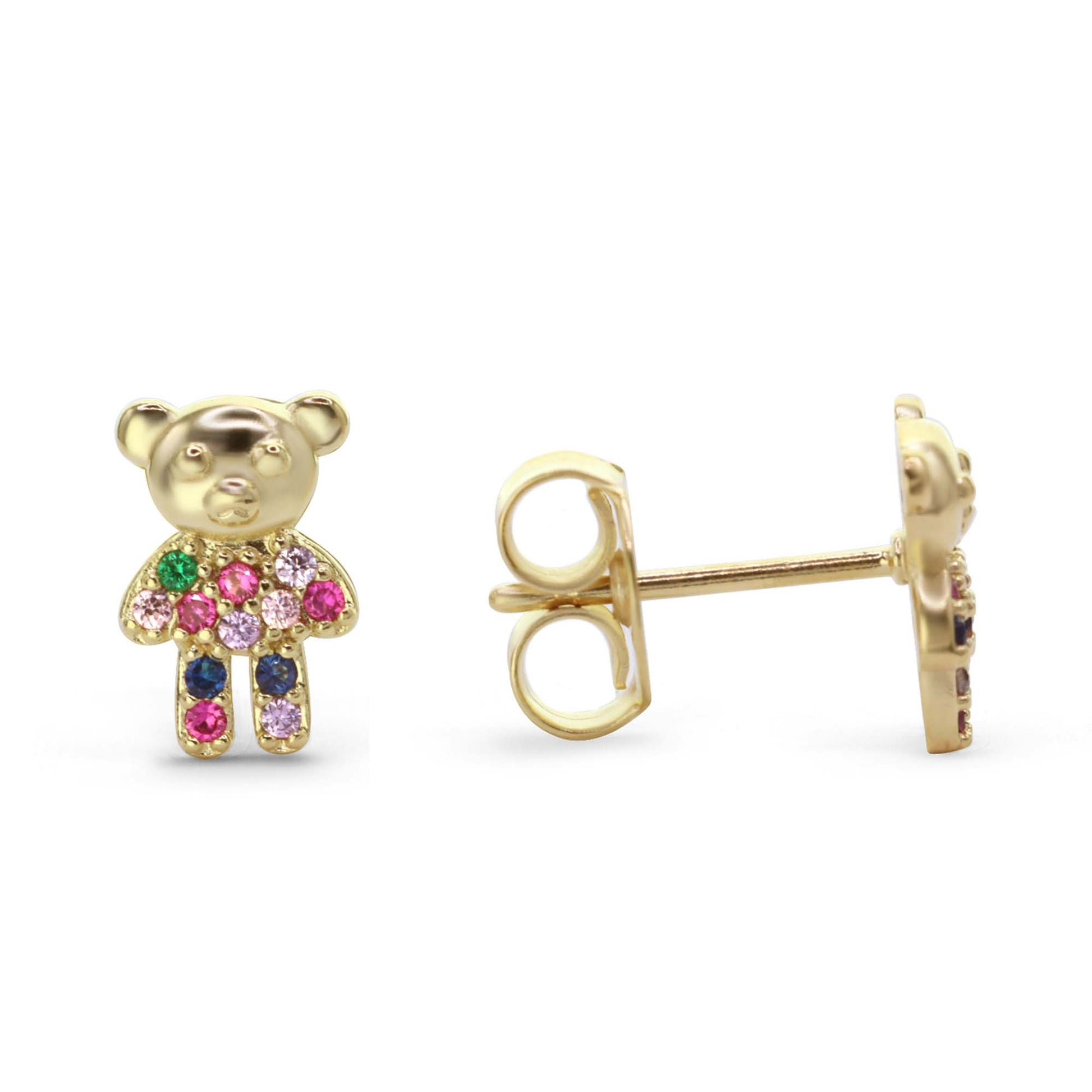 Aros Enchapados en Oro Diseño Oso con Circones de Colores