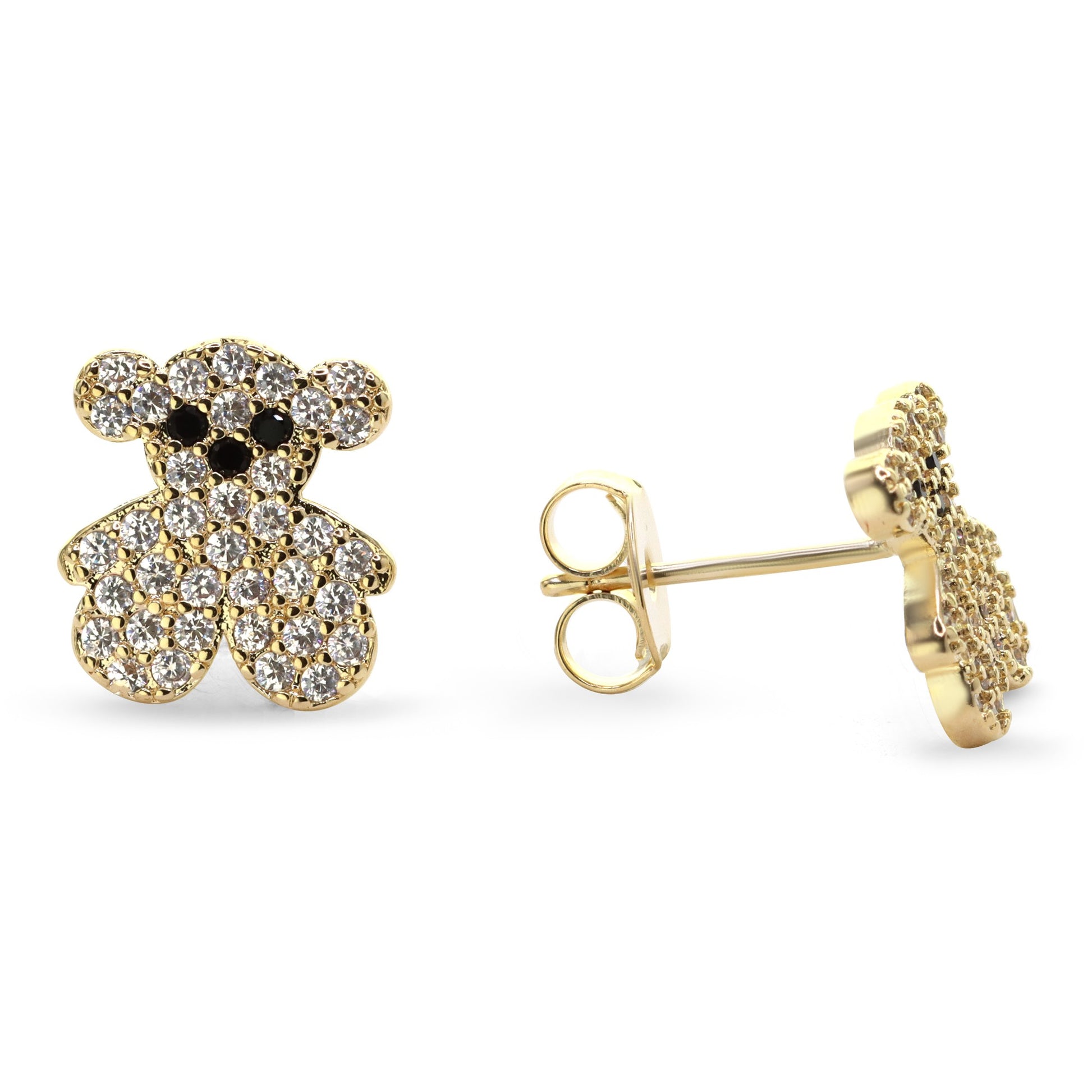 Aros Enchapados en Oro Diseño Osos con Circones. Tamaño 12 mm.