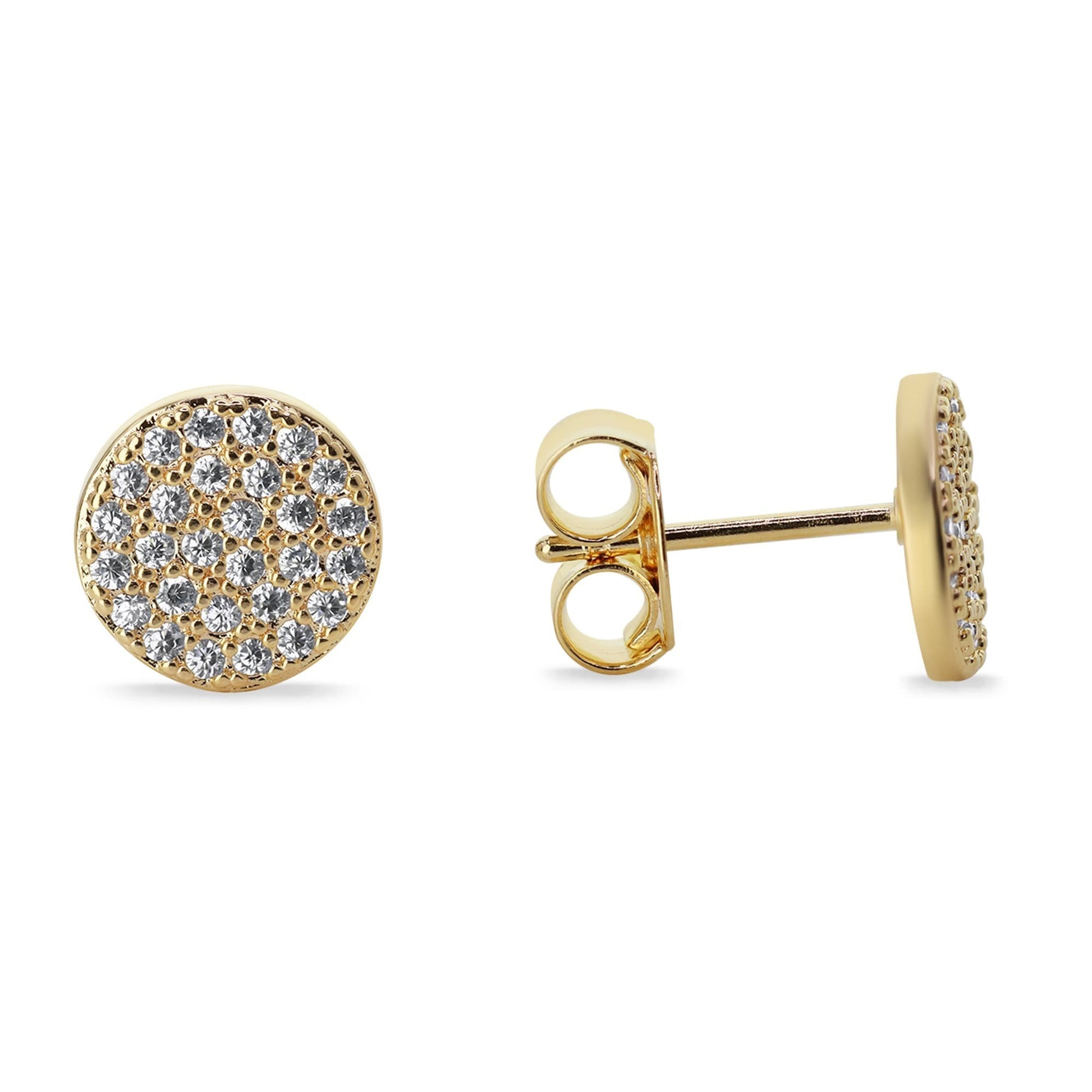 Aros Enchapados en Oro Diseño Placa Circular con Circones