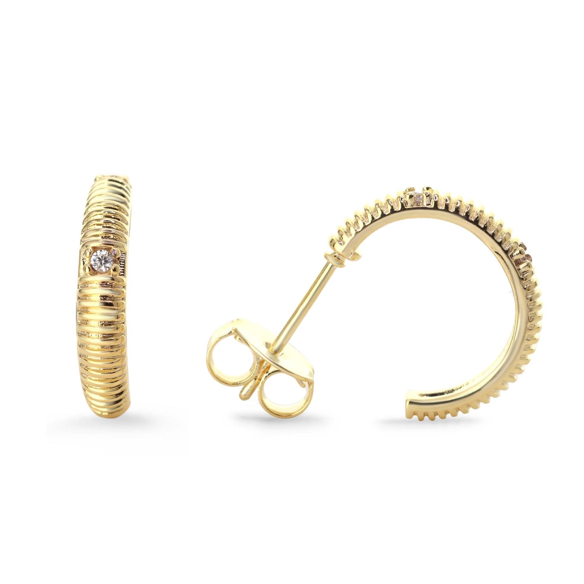 Aros Enchapados en Oro Diseño Semi Argollas Caladas con Aplicaciones de Circón