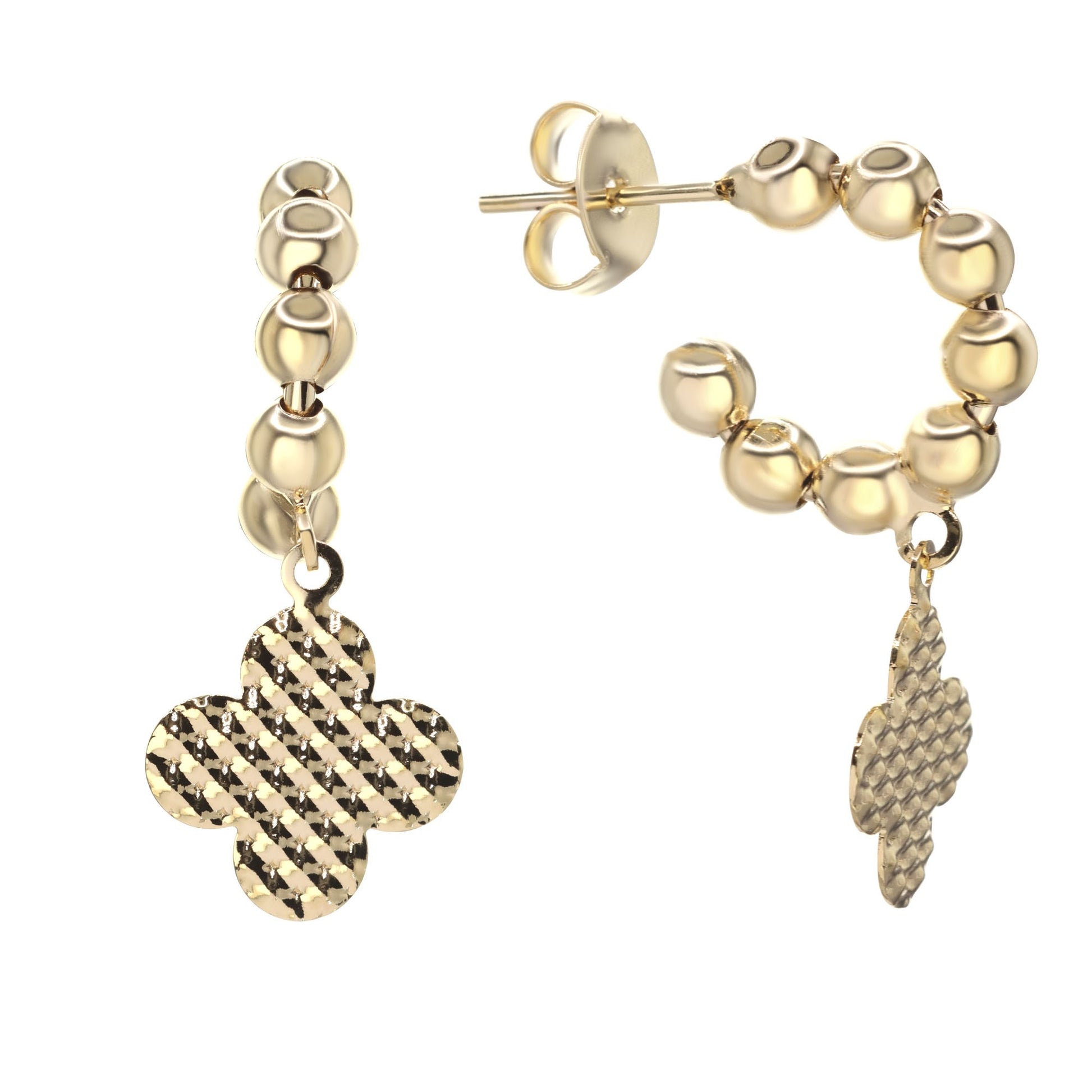 Aros Enchapados en Oro Estilo Argollas de Esferas con Placas Trébol