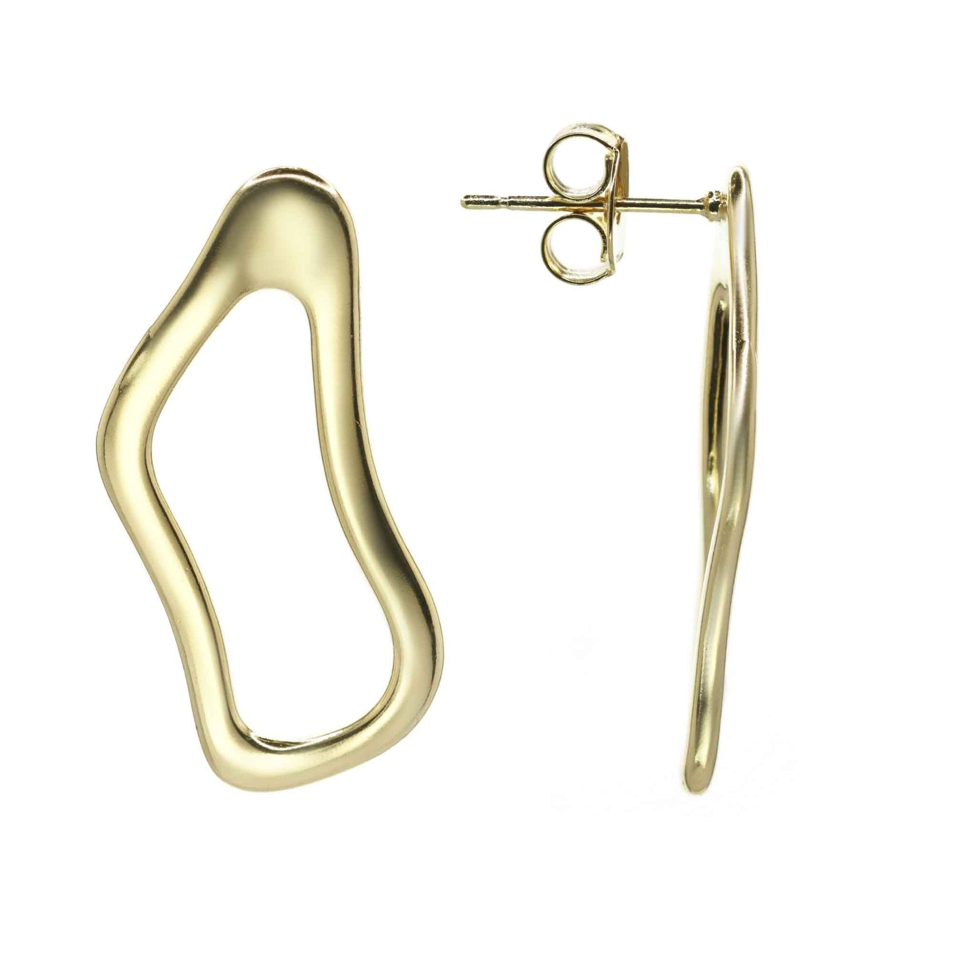 Aros Enchapados en Oro Figuras Ovaladas Irregulares Lisas. Tamaño 3,1 cm.