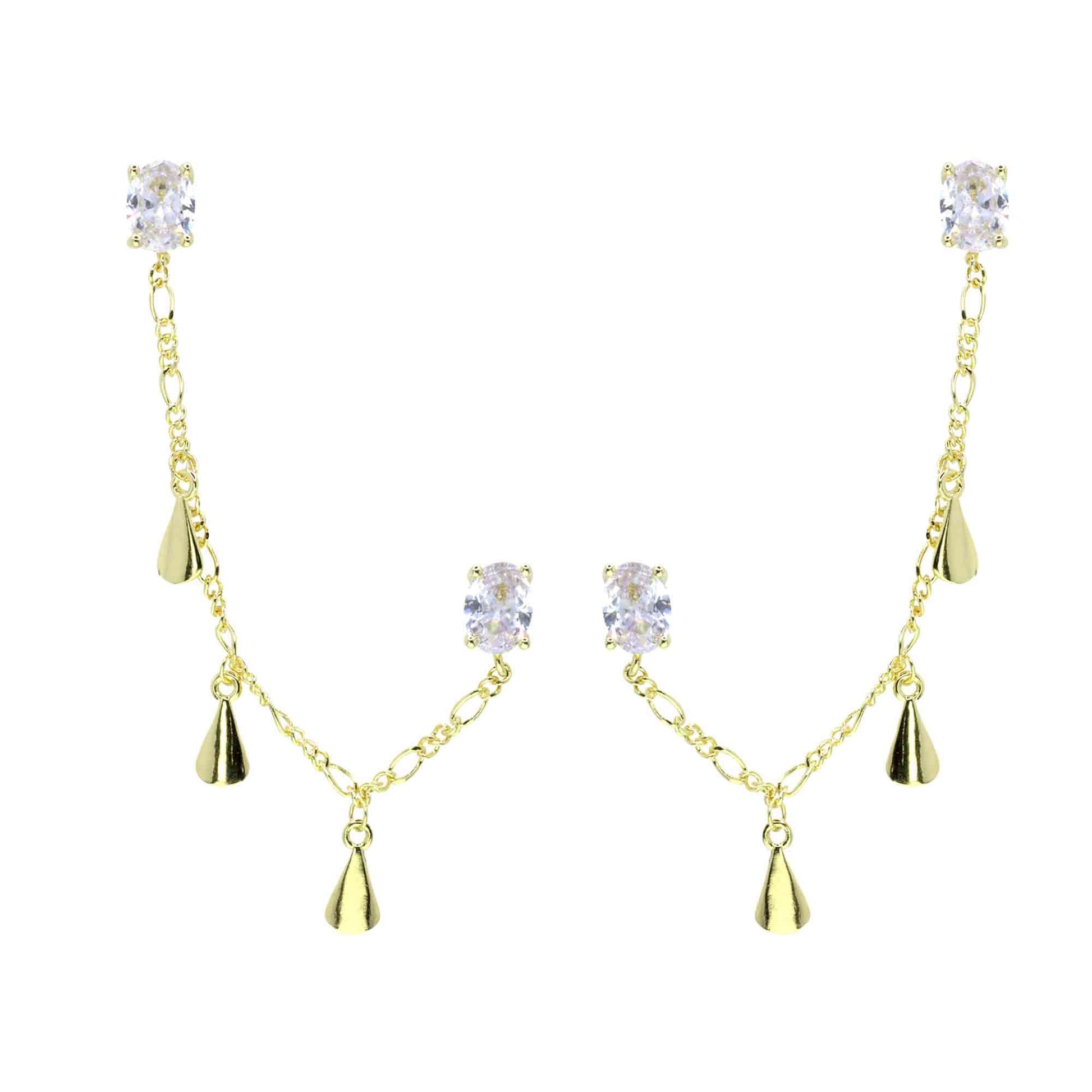 Aros Enchapados en Oro Puntas de Circón y Cadena con Gotas