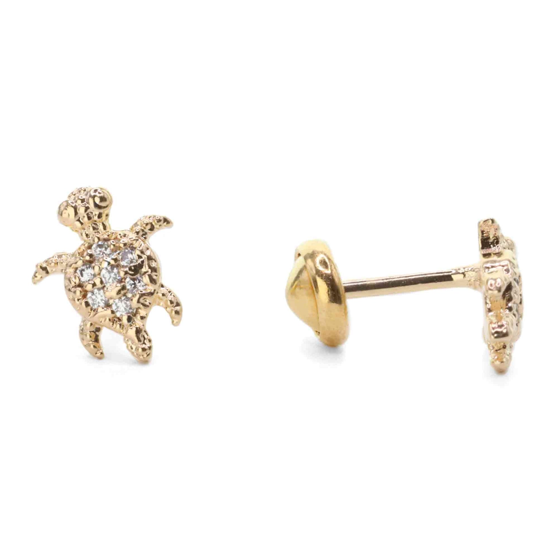 Aros Enchapados en Oro Rosado Pequeñas Tortugas con Tope