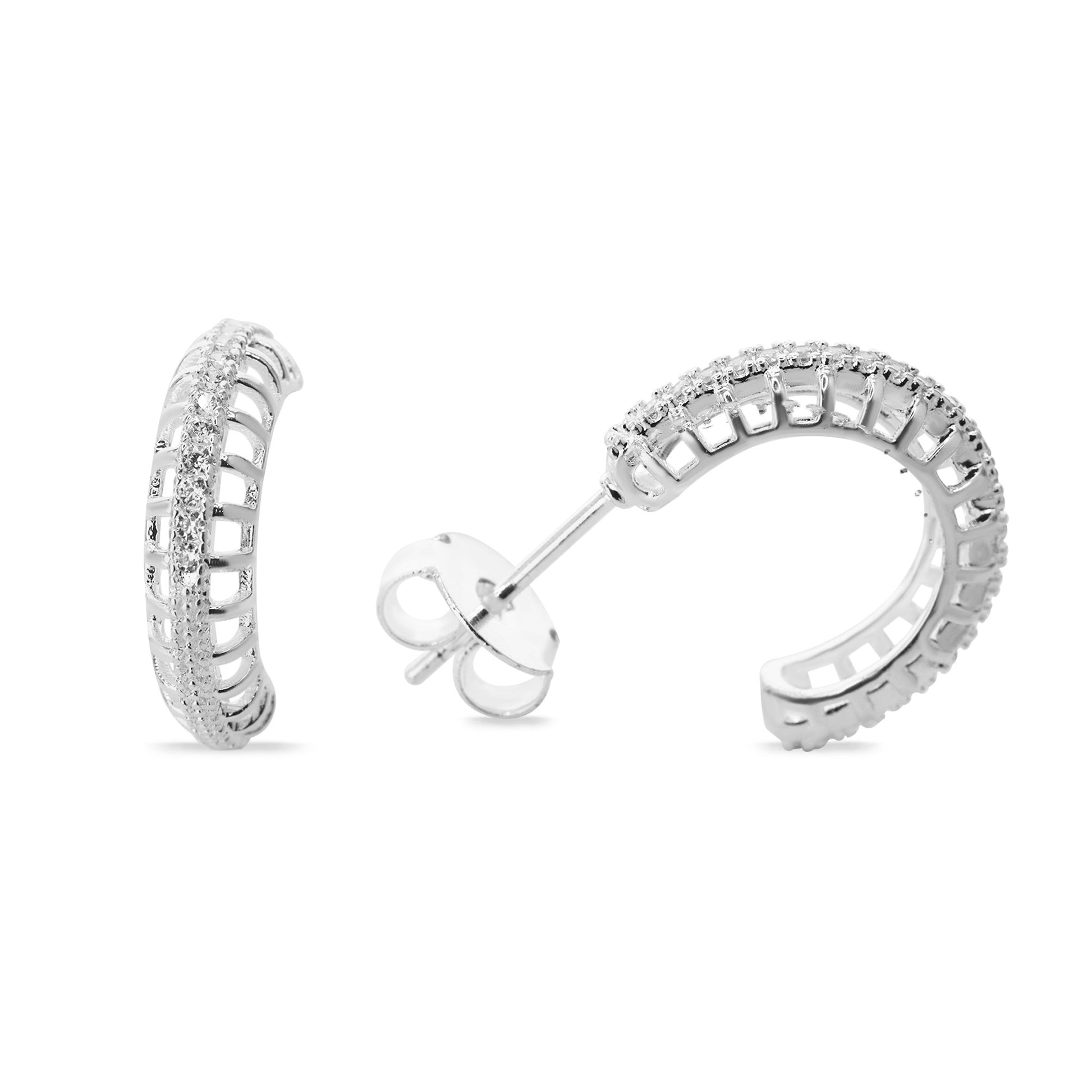 Aros Enchapados en Plata Media Argolla Calada con Circones en los Bordes