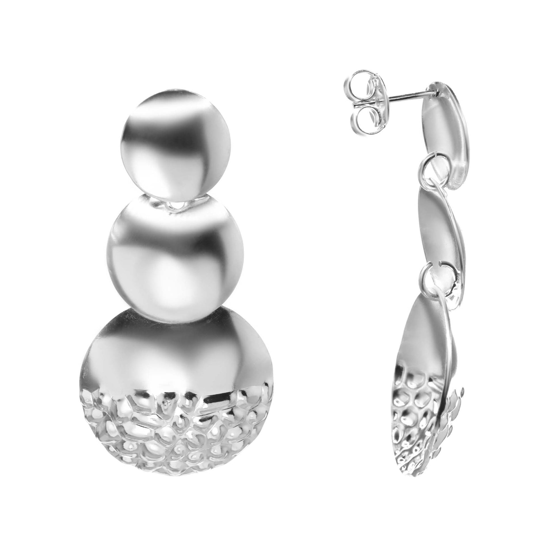 Aros Enchapados en Plata Trío de Placas Lisas y Martillada. Tamaño 4,5 cm.