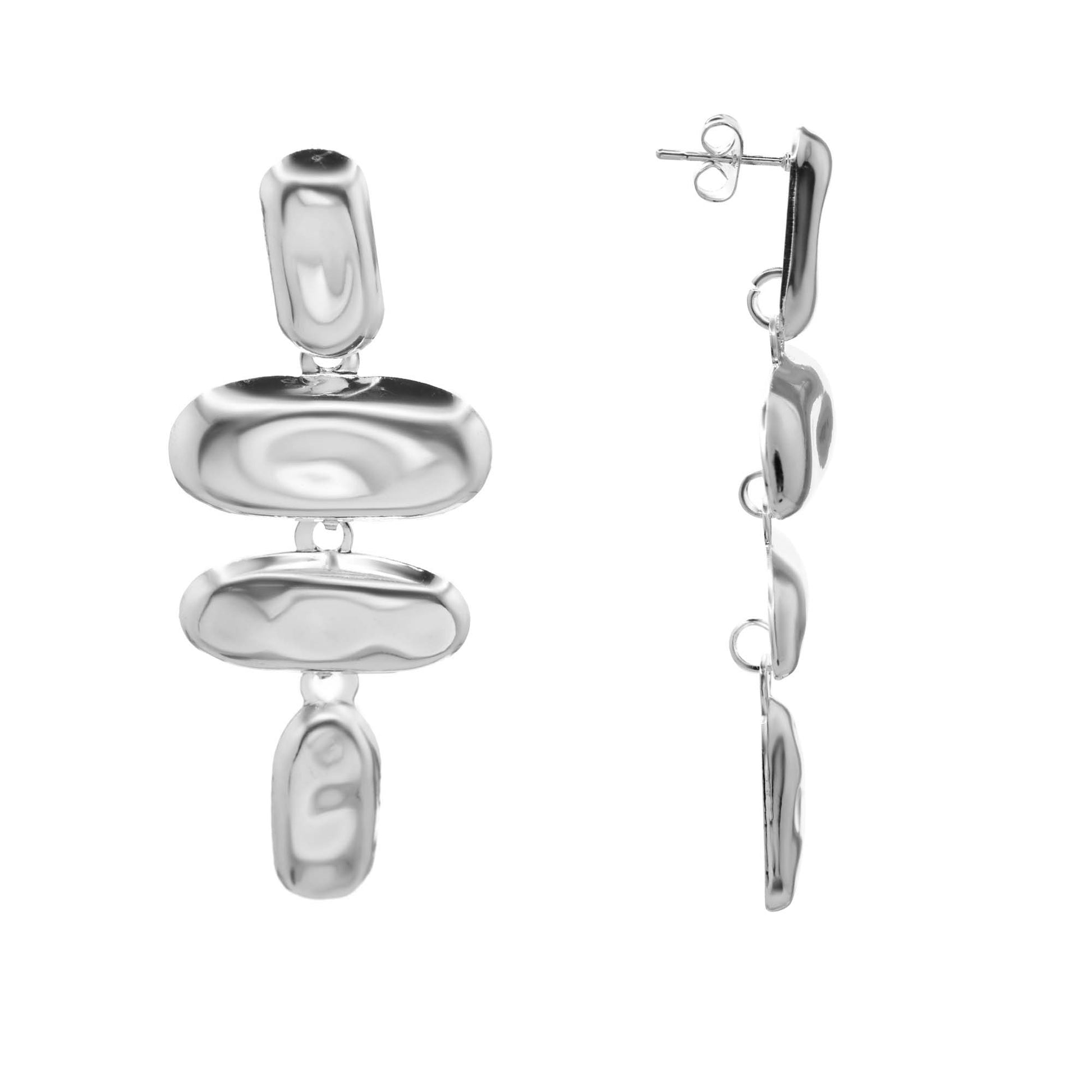 Aros Enchapados en Plata Unión Óvalos Lisos Irregulares