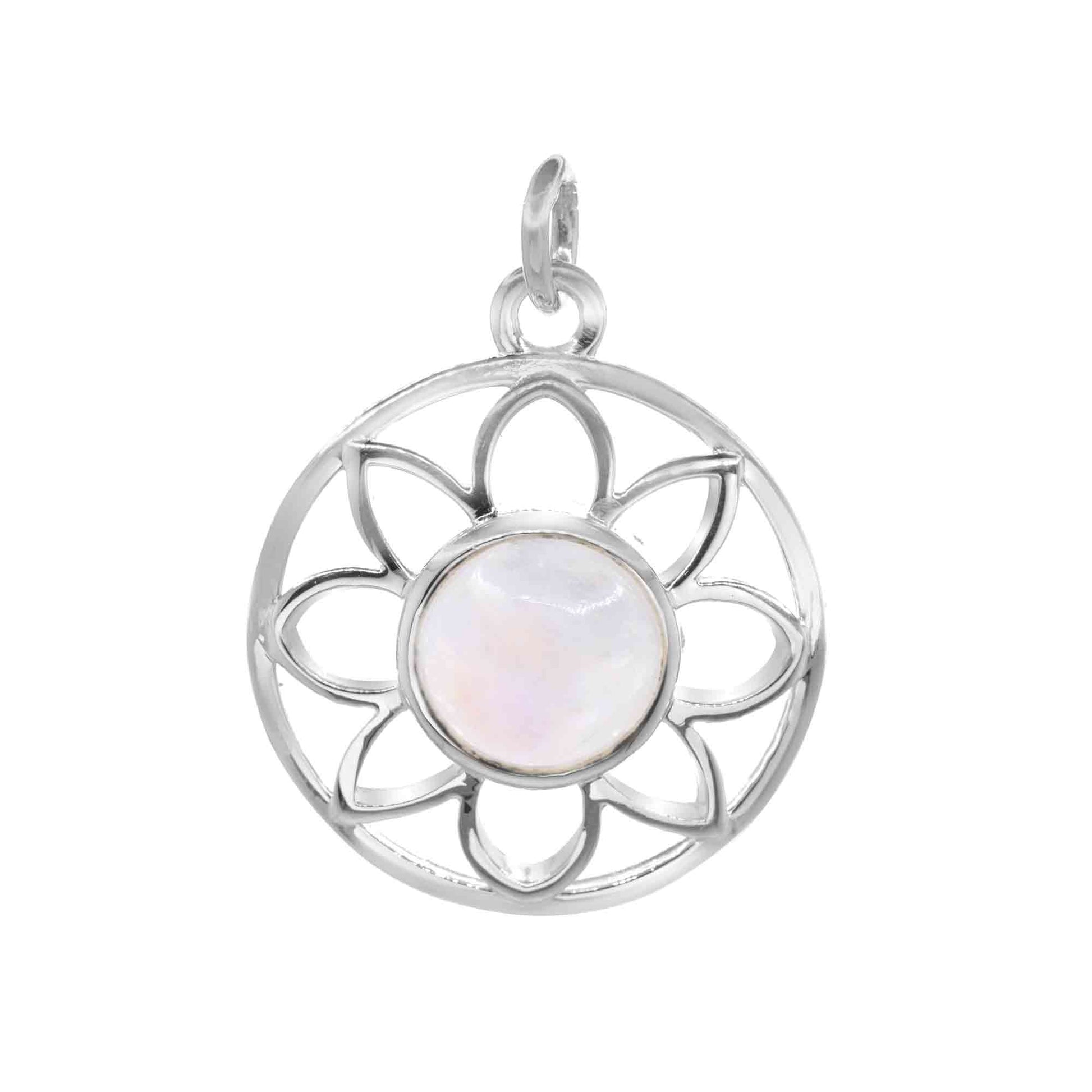 Colgante de Plata 925 Figura Flor con Piedra Luna. Peso 3,03 Gramos Aprox. Tamaño 2,6 cm.