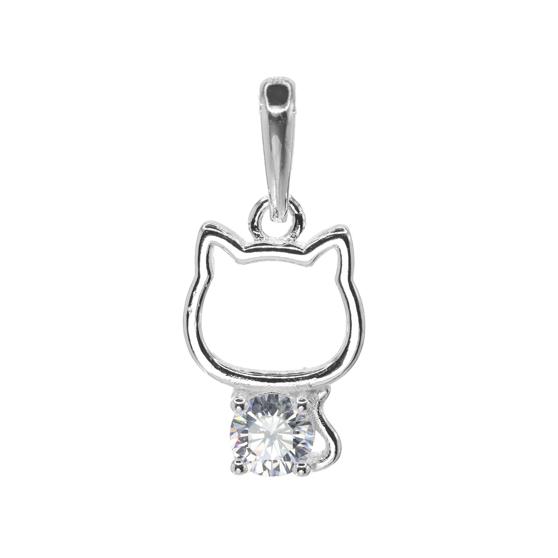 Colgante de Plata 925 Figura Gato con Circón. Peso 0,7 Gramos Aprox.