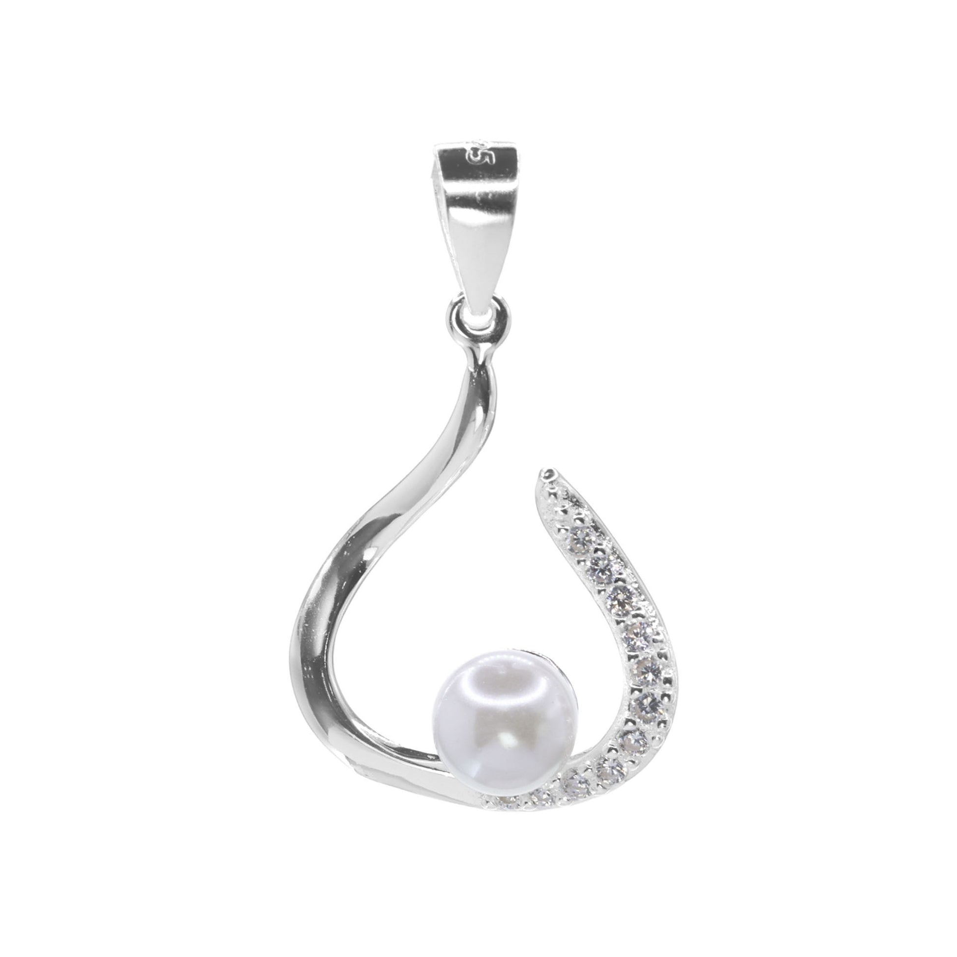 Colgante de Plata 925 Figura Gota con Perla y Circones.
