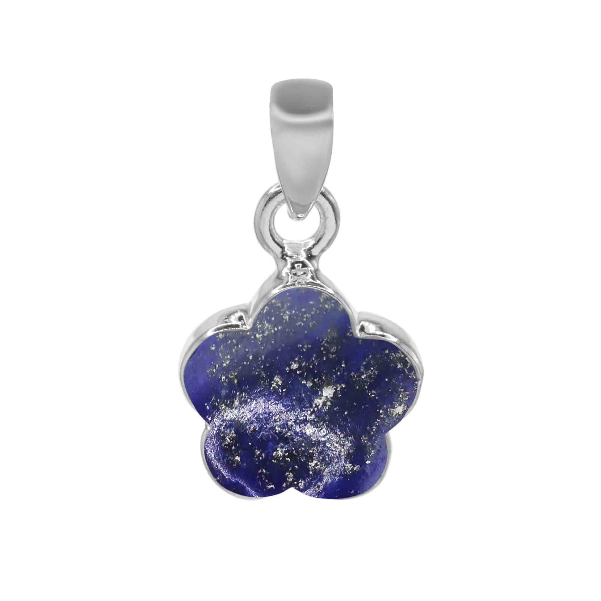 Colgante de Plata 925 Flor con Lapislázuli. Peso 2,54 Gramos Aprox. Tamaño 2,3 cm.
