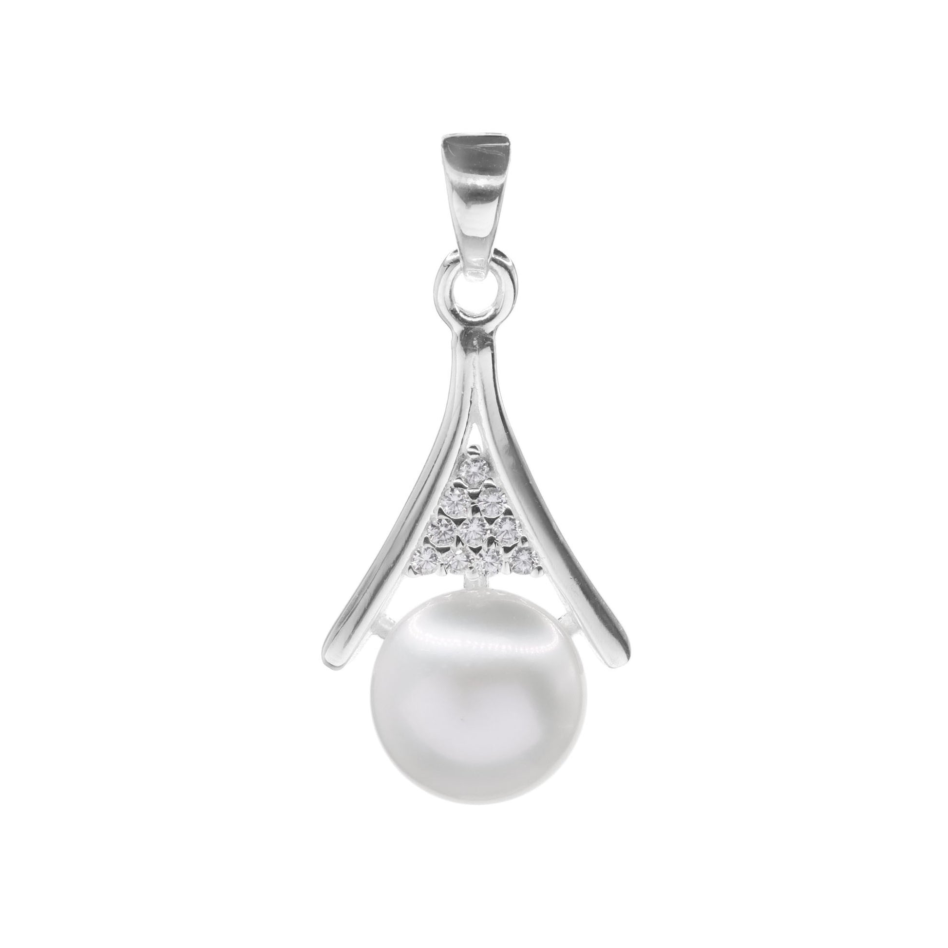 Colgante de Plata Perlas con Pequeña Placa con Circones