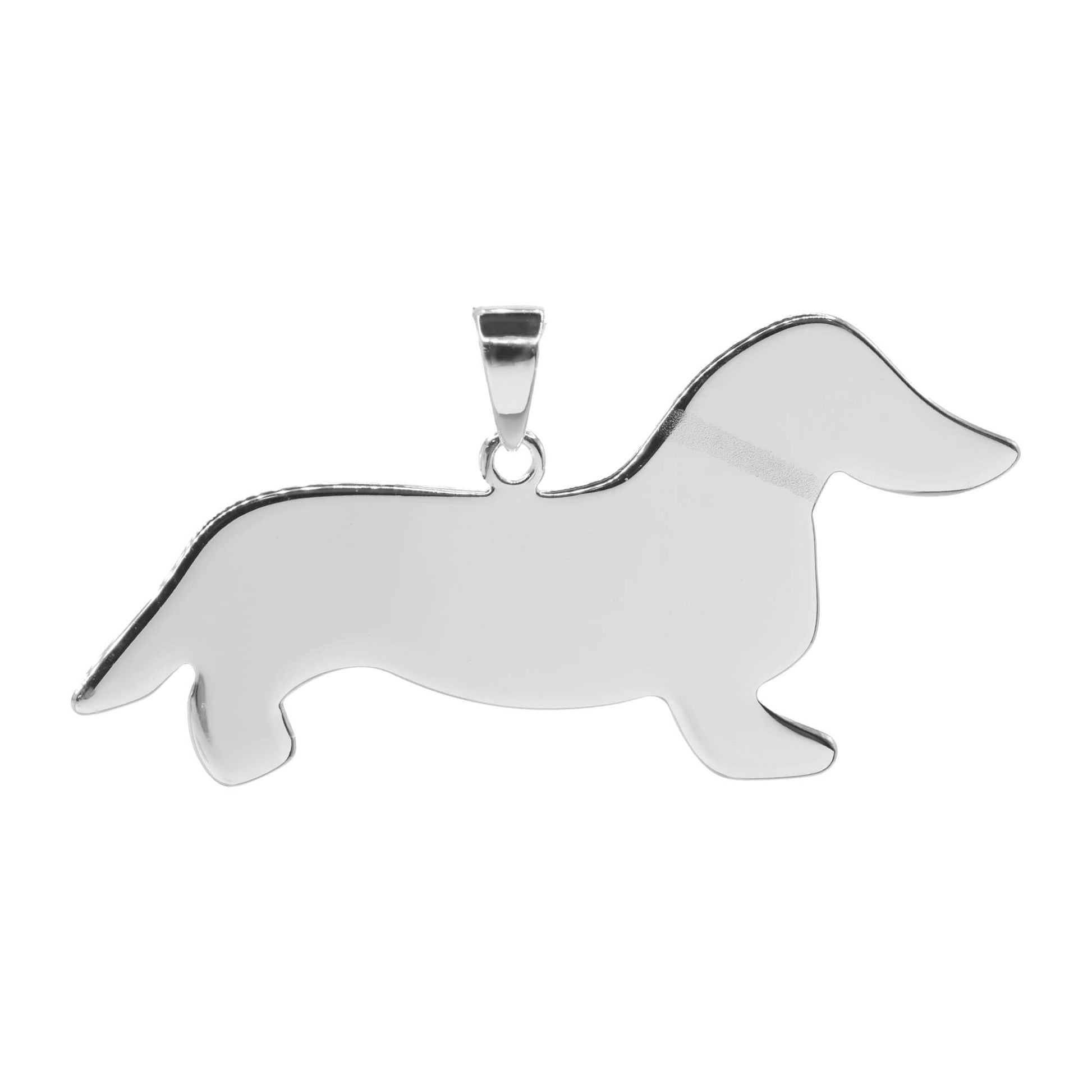 Colgante de Plata 925 Placa lisa Perro Salchicha. Peso 2,07 Gramos Aprox.