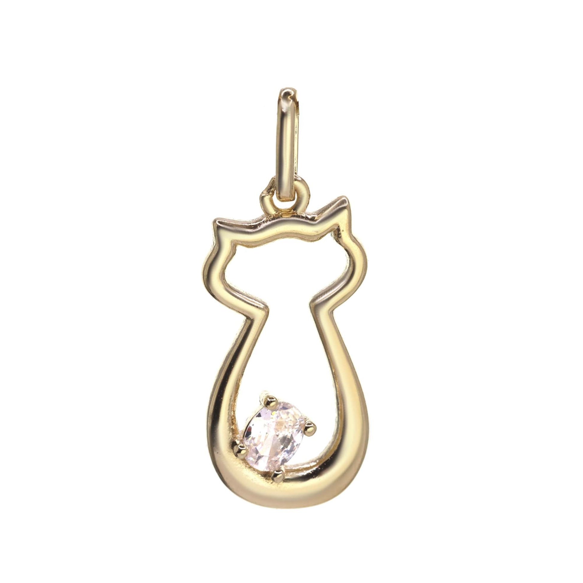De enchapado en oro colgante gato calado con circón tradicional en diseño versátil y llamativo.