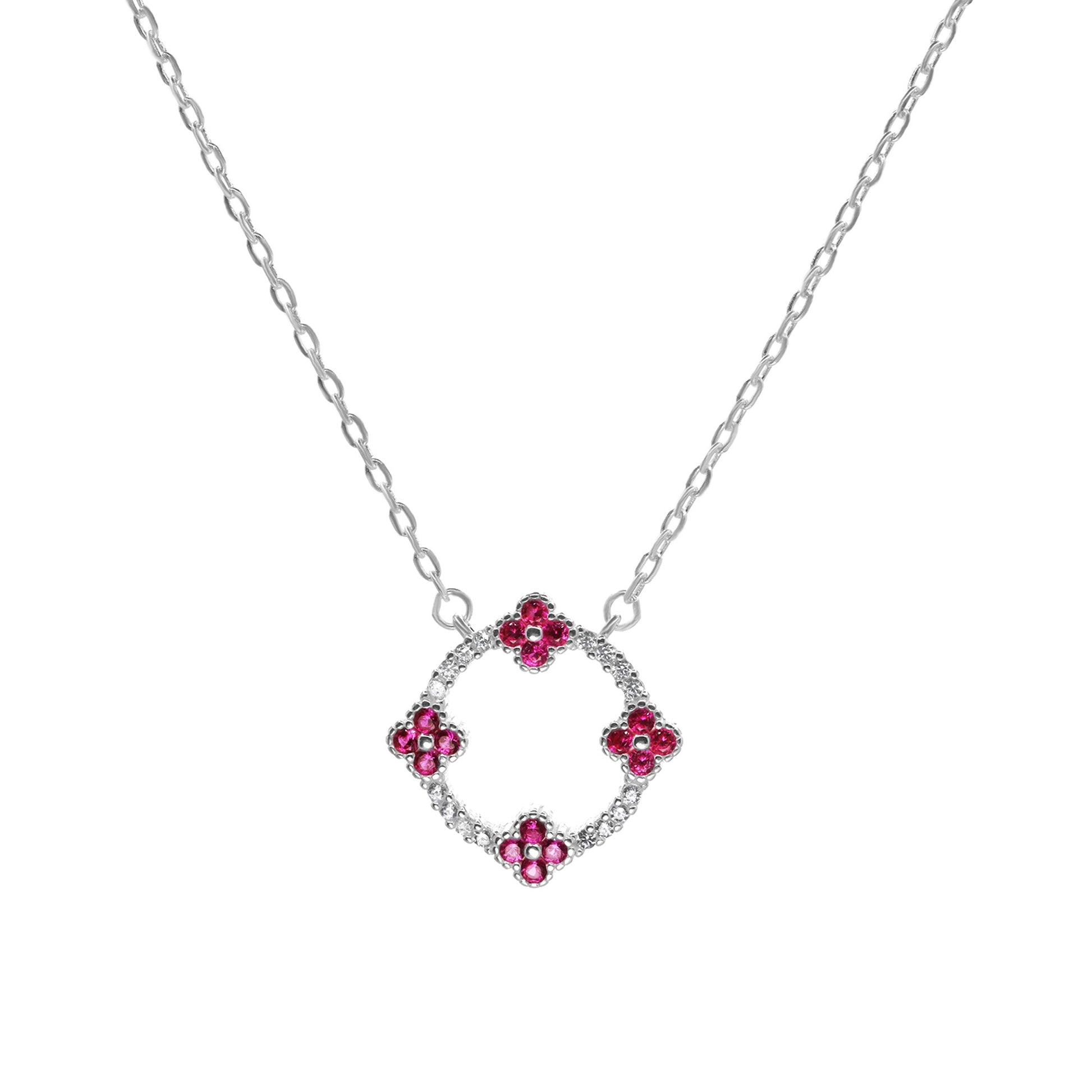 Collar de Plata - Argolla con Flores Magenta y Circones en los Bordes