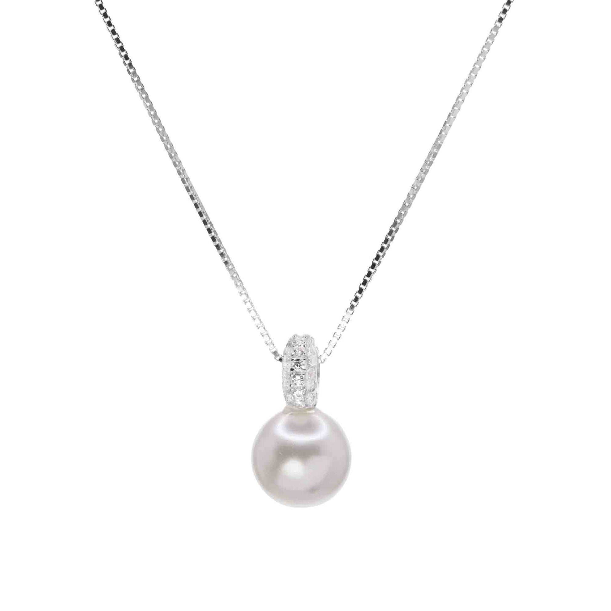 Collar de Plata - Círculo con Circones y Perla Imitación