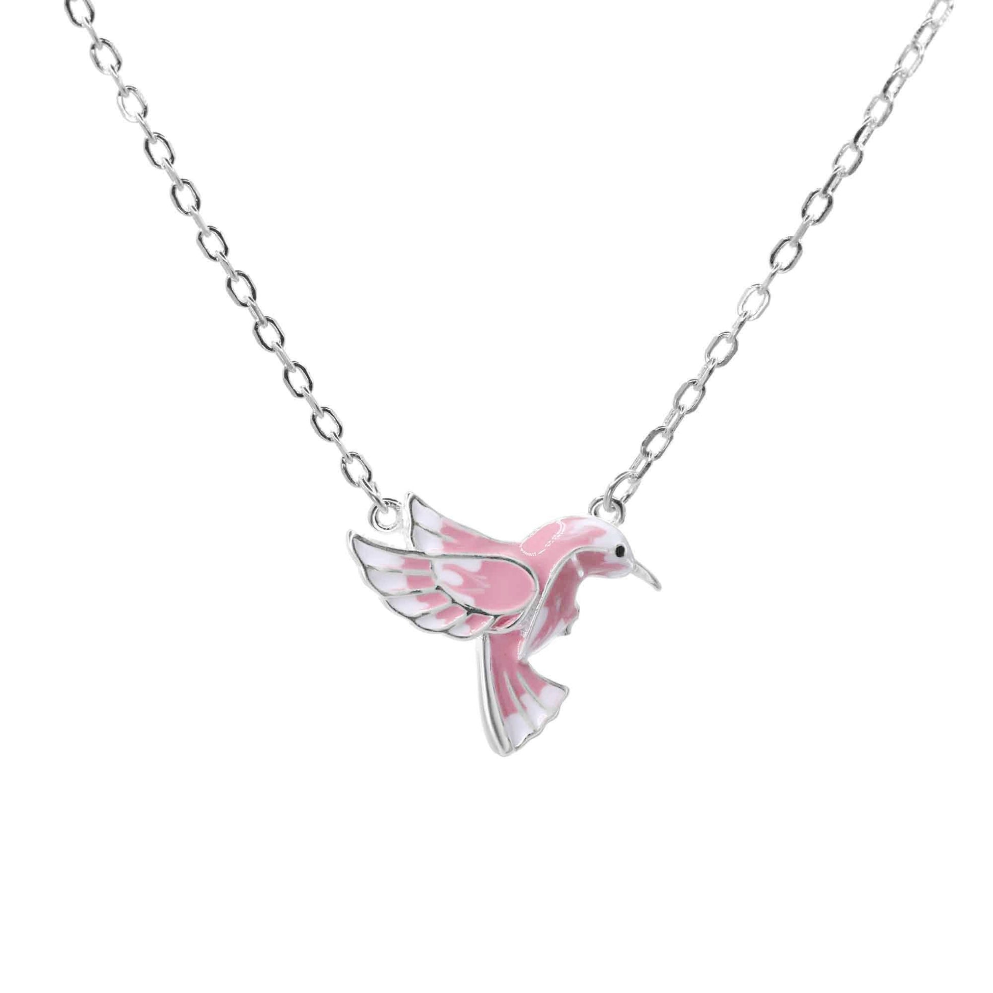 Collar de Plata Colibrí Esmaltado Rosa