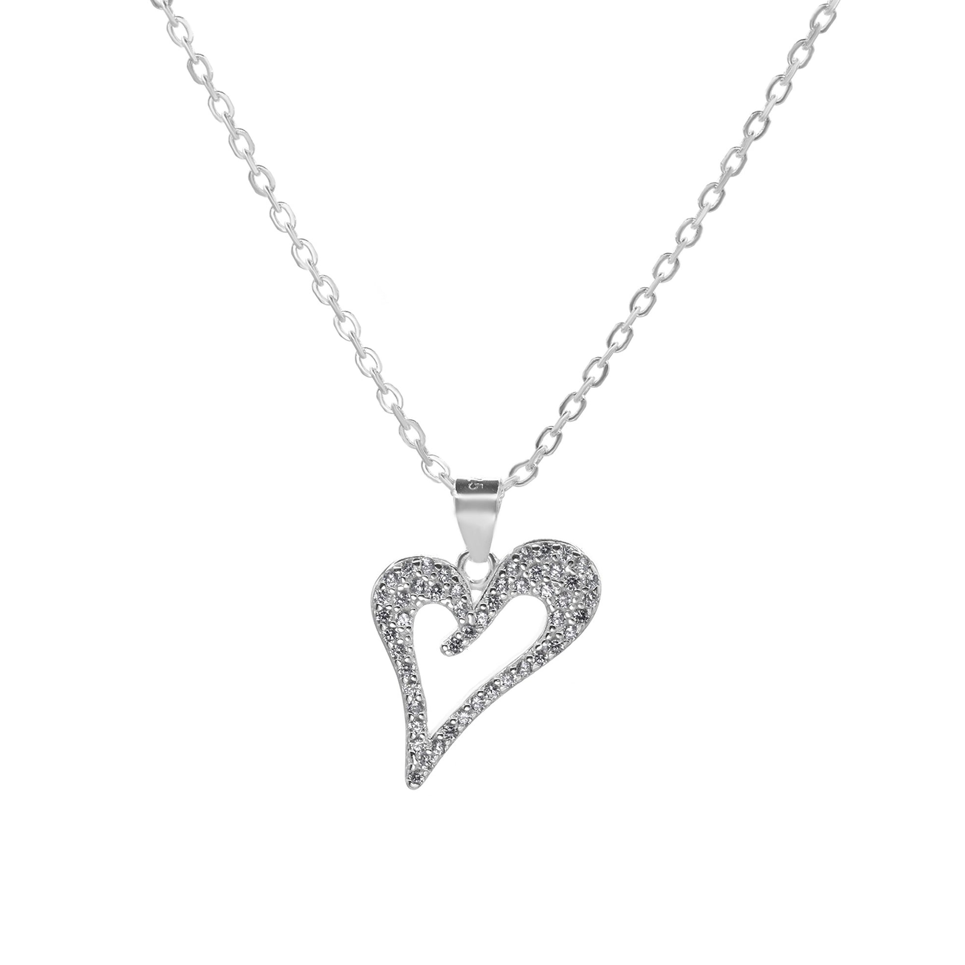 Collar de Plata 925 Diseño Corazón Irregular con Circones. Peso 2,84 Gramos Aprox.