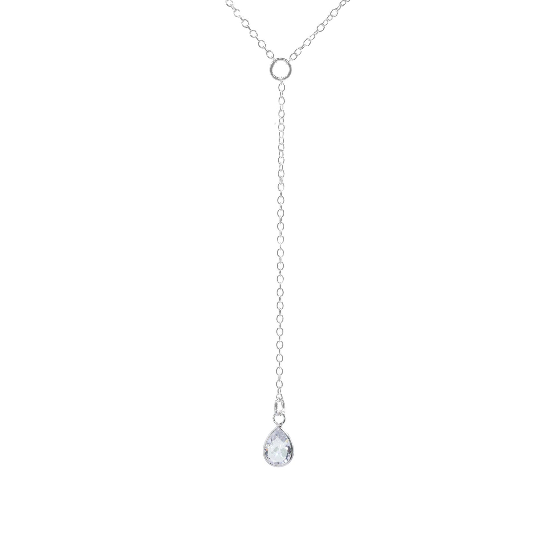 Collar de Plata 925 Estilo en Y con Gota de Circón. Peso 2,0 Gramos Aprox.