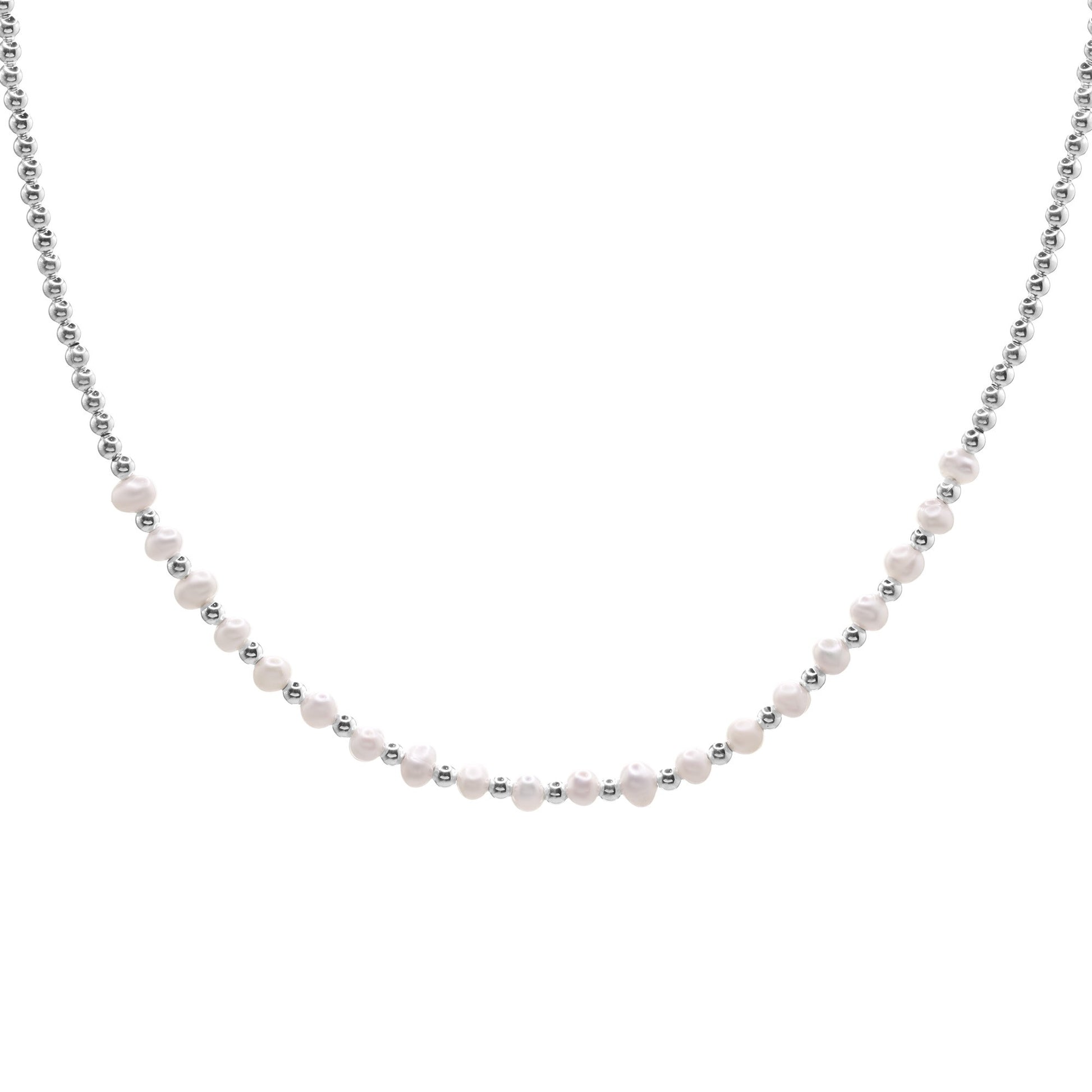 Collar de Plata 925 Esferas Lisas con Perlas.