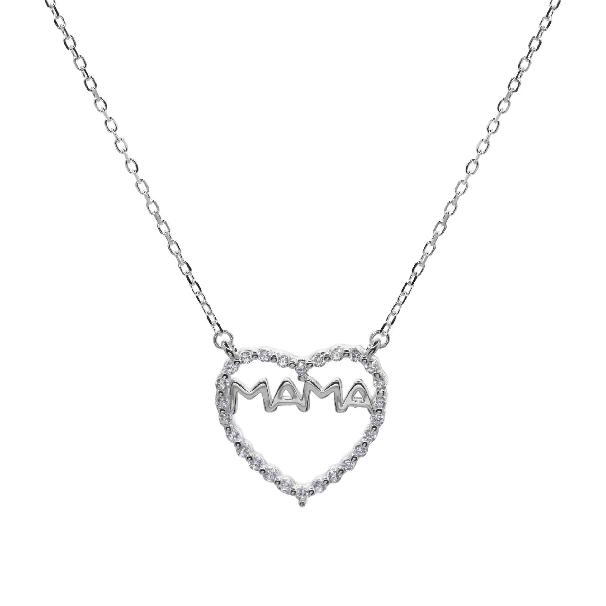Collar de Plata 925 Figura Corazón Mamá con Circones.