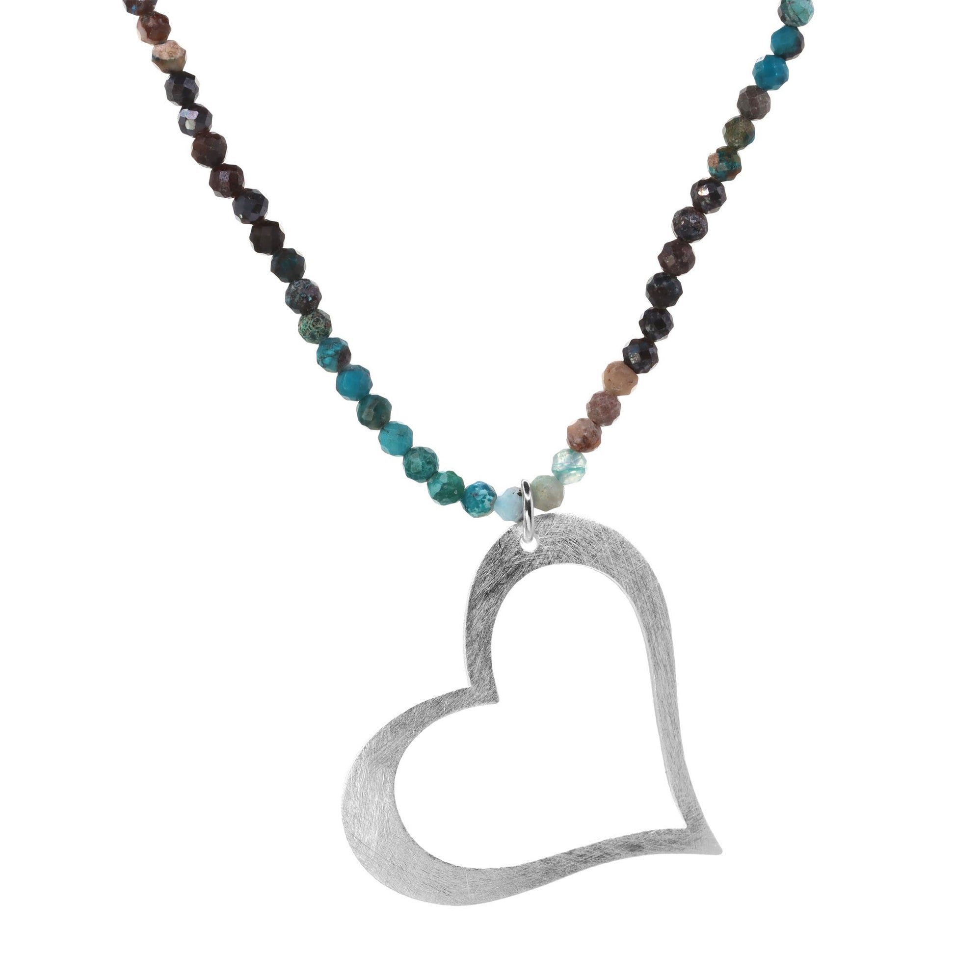 Collar de Plata Figura Corazón Satinada con Piedra Ágata Tonos Tierra