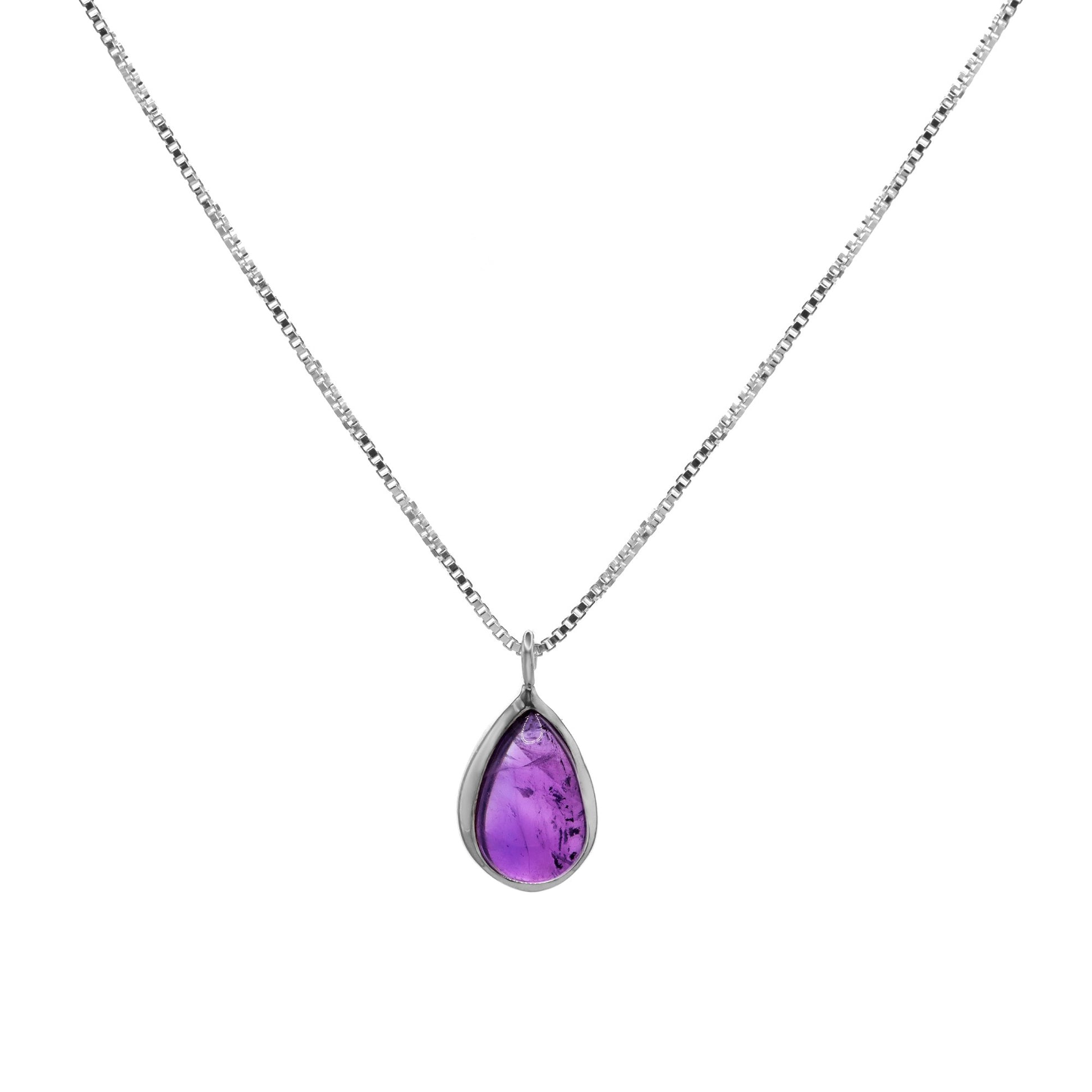 Collar de Plata - Gota con Piedra Amatista 45 cm