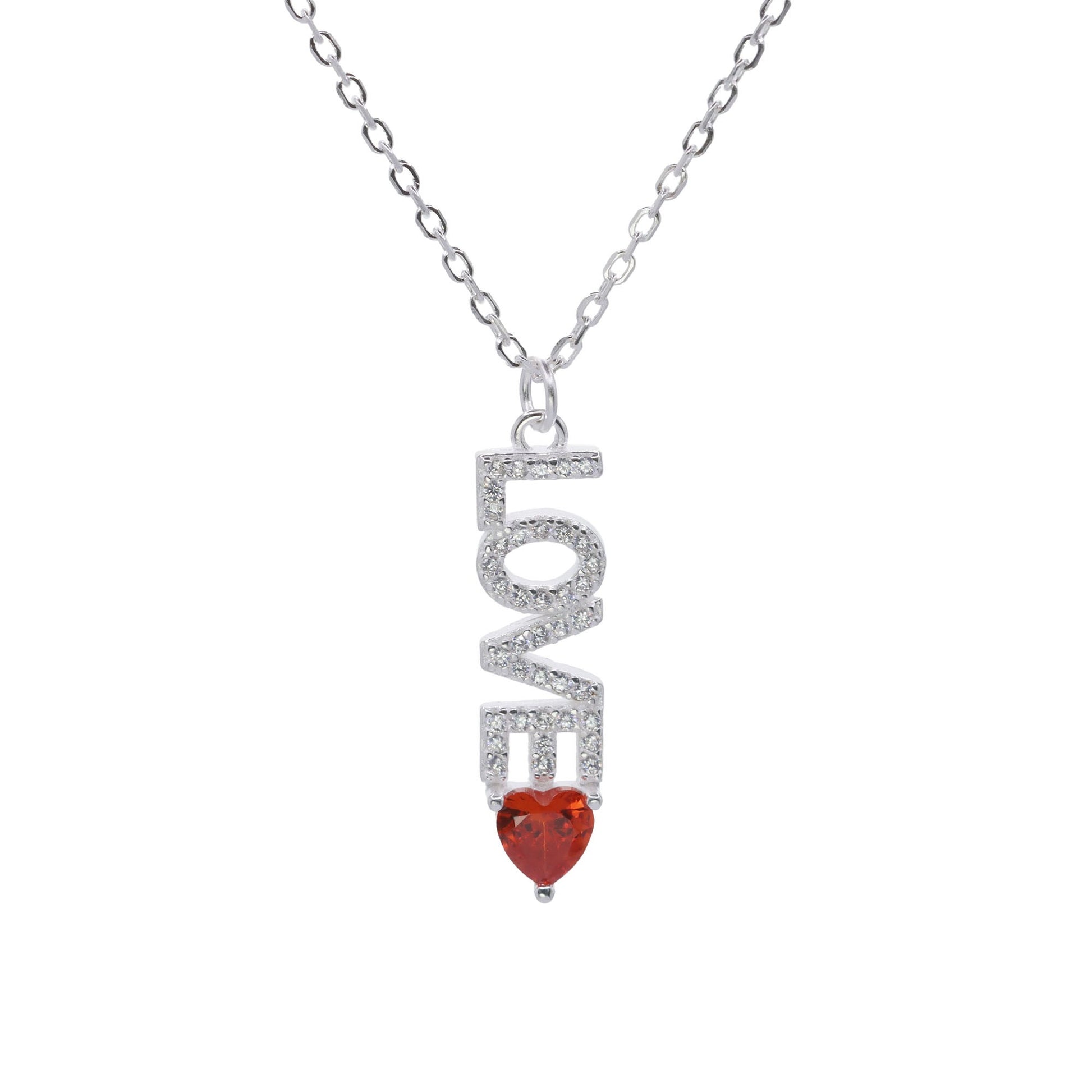 Collar de Plata 925 Diseño LOVE Circones y Corazón Rubí.