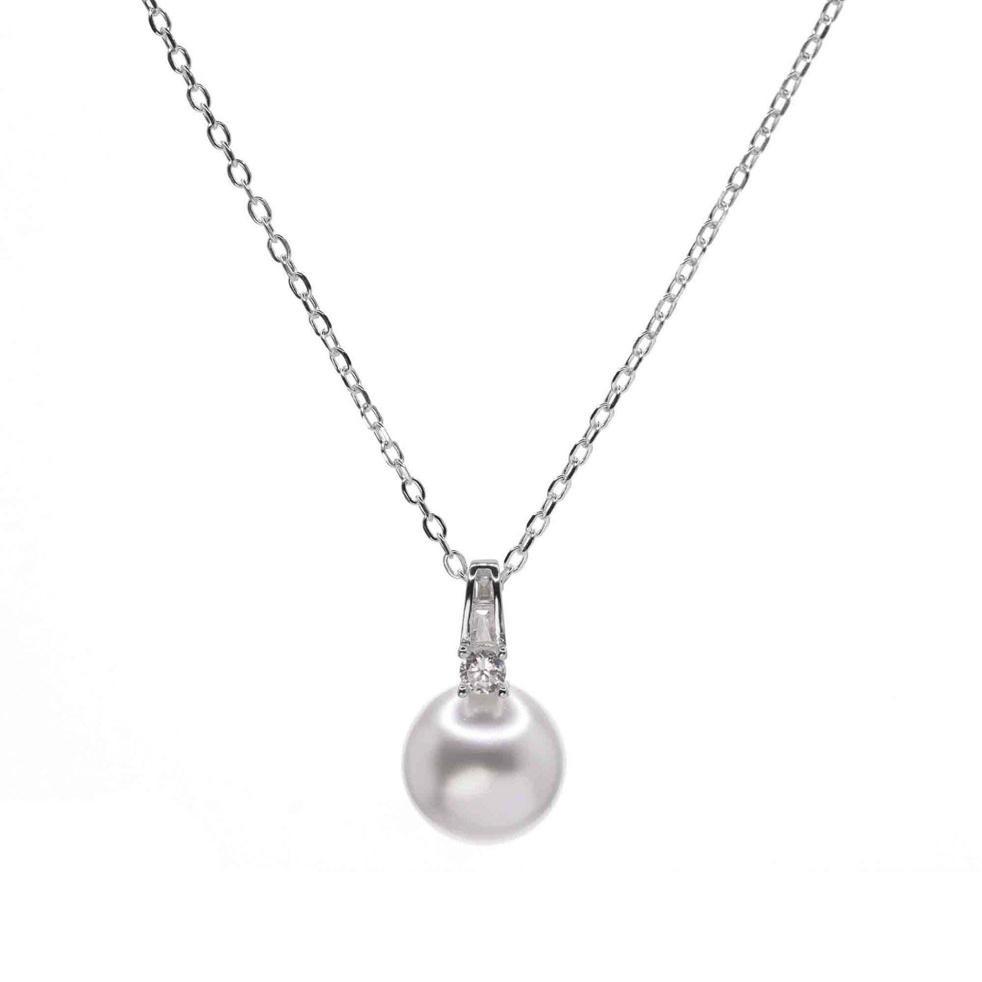 Collar de Plata Perla con Pequeño Circón Cuadrado