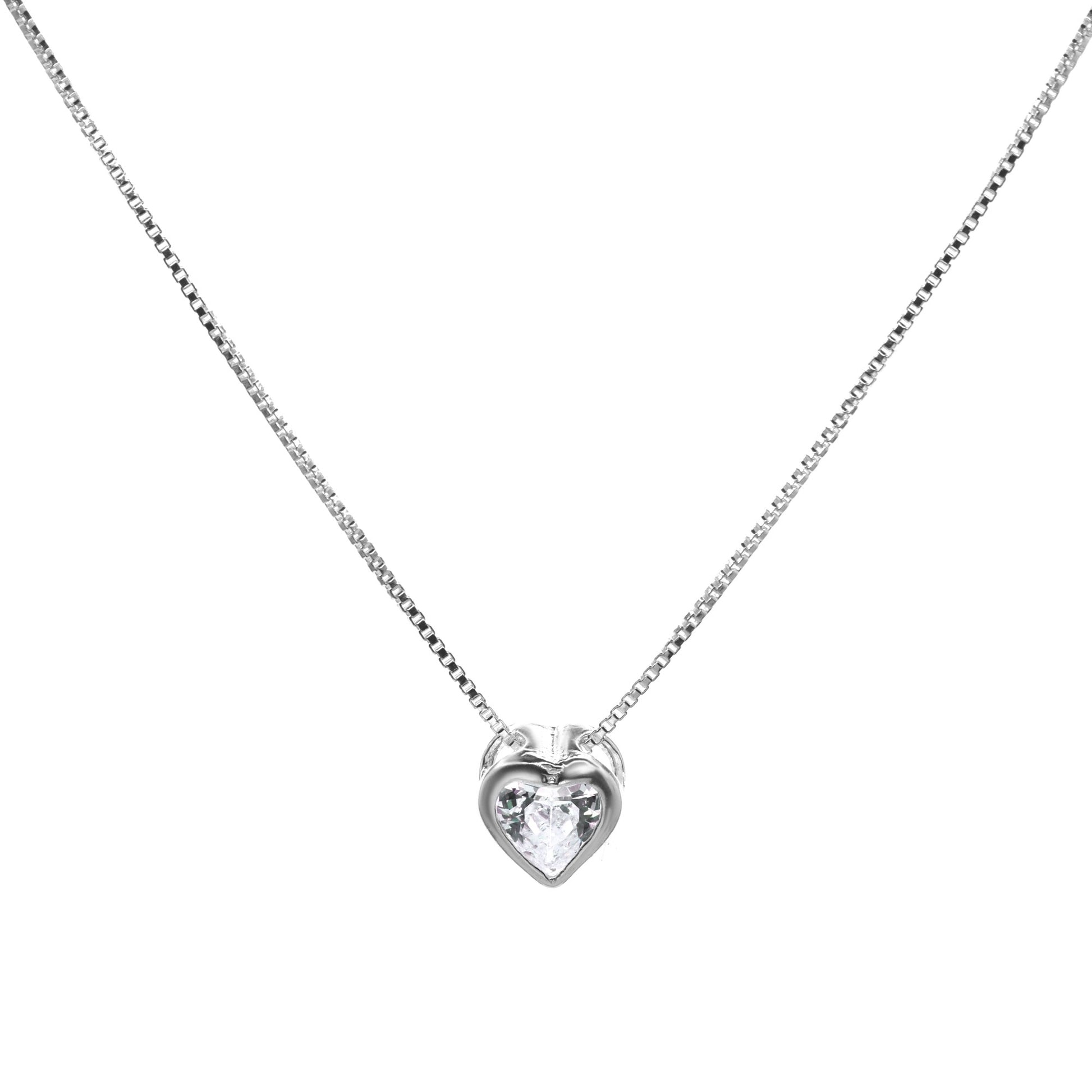 Collar de Plata - Punto de Luz Corazón de Circón 45 cm