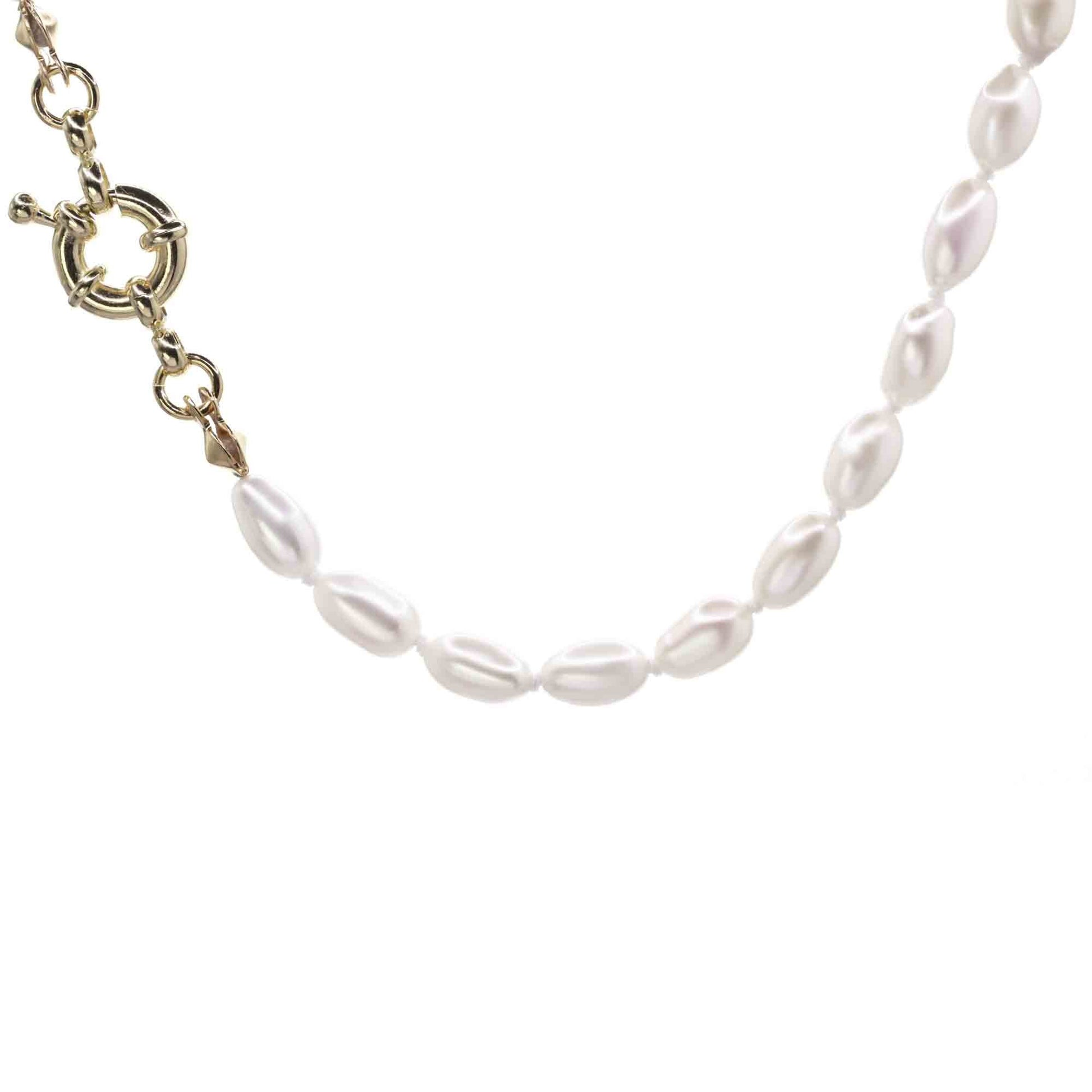 Collar Enchapado en Oro - de Perlas de Río con Broche Timón