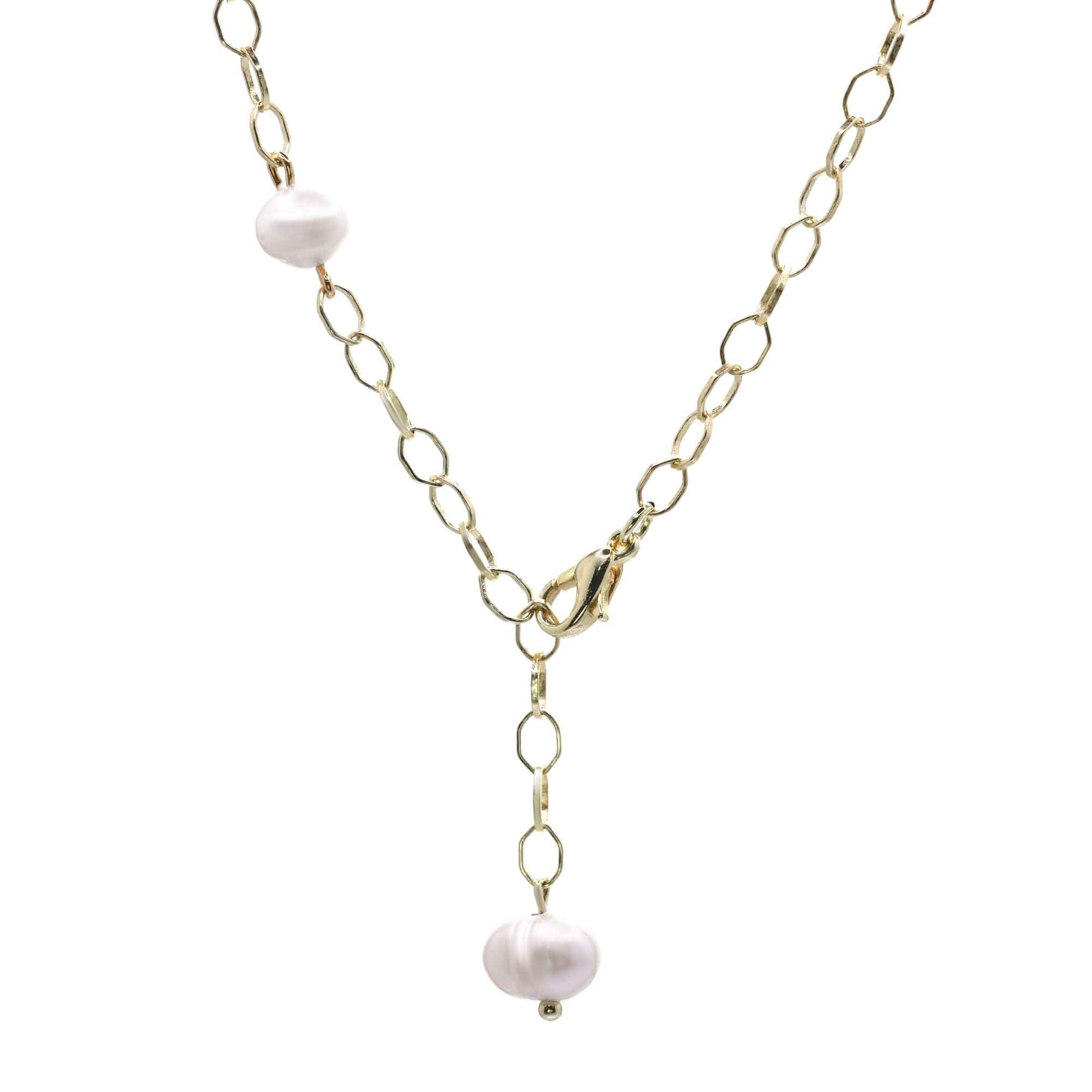 Collar Enchapado en Oro Eslabón Ovalado con Perlas de Río 80 cm