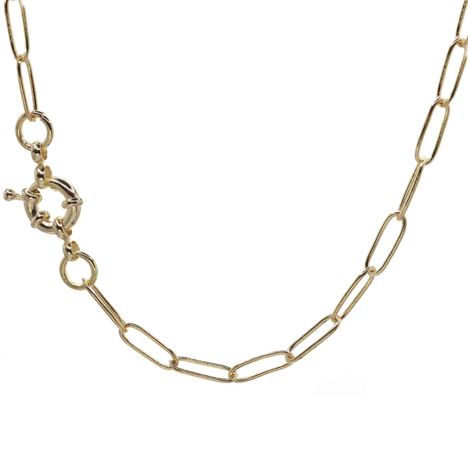 Collar Enchapado en Oro Eslabones Ovalados con Broche Timón