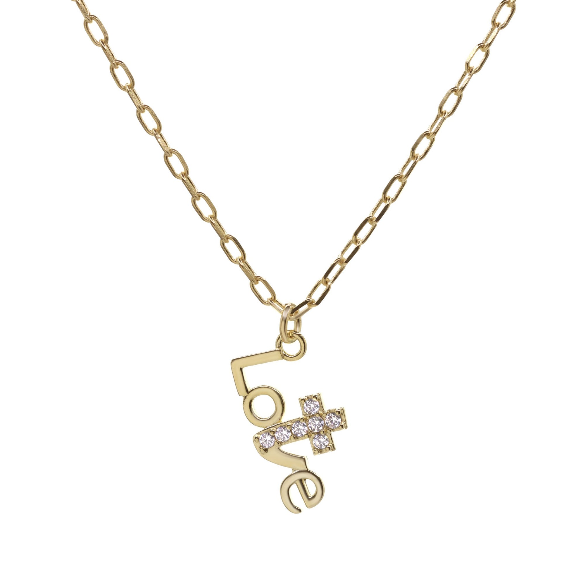 Collar Enchapado en Oro - Love con Cruz de Circones