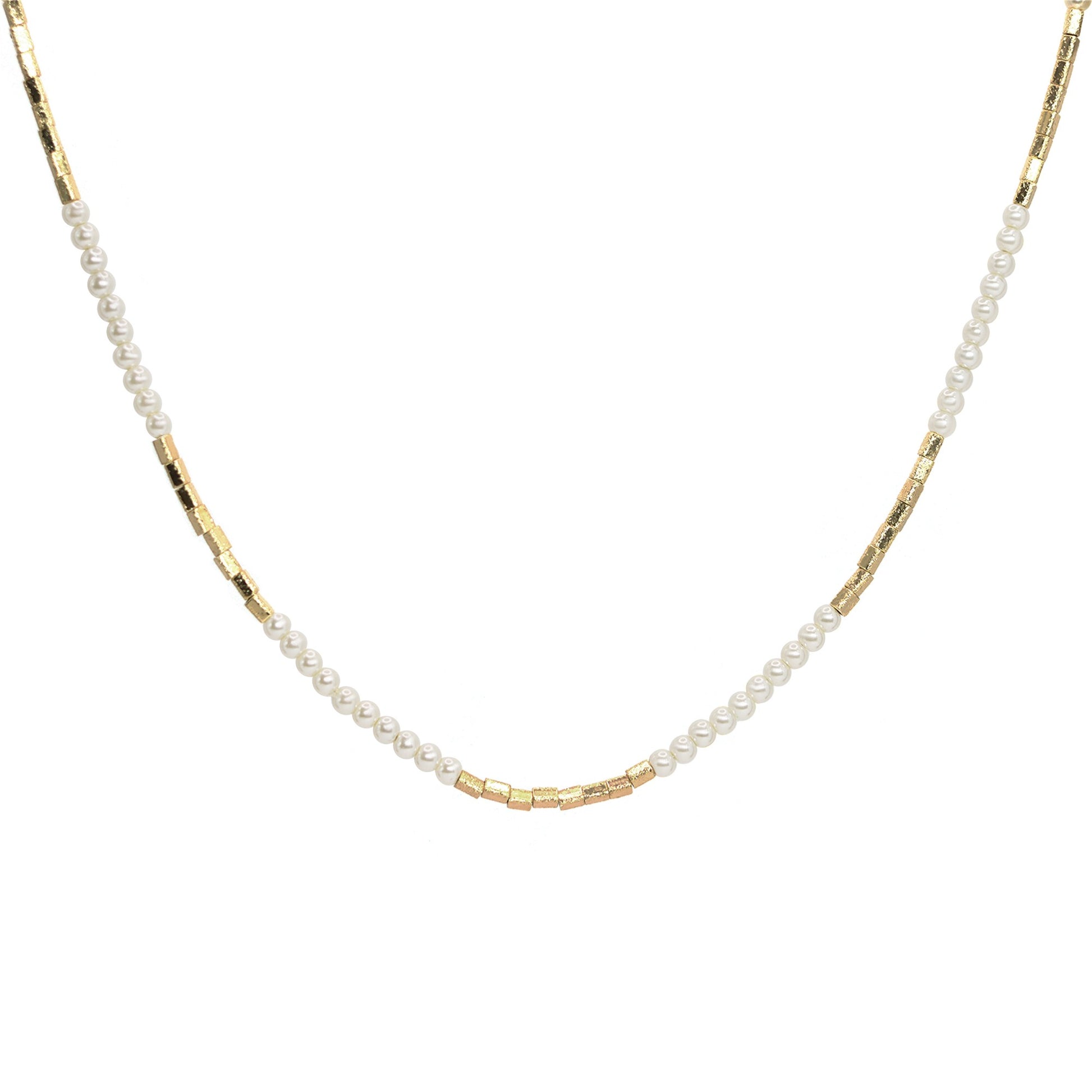 Collar Enchapado en Oro Pequeñas Perlas de Imitación Combinadas con Canutillos Dorados Satinados