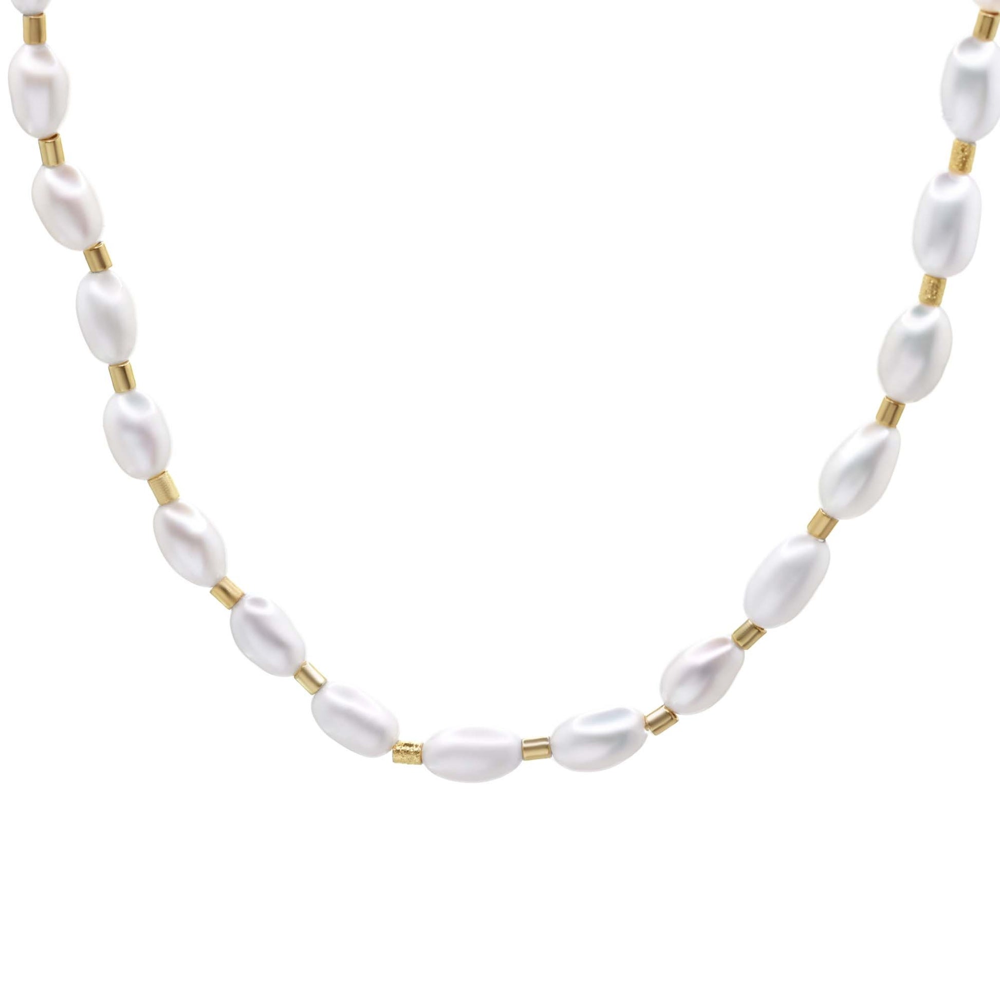 Collar Enchapado en Oro Perlas de Río Arroz con Mostacilla Satinada.