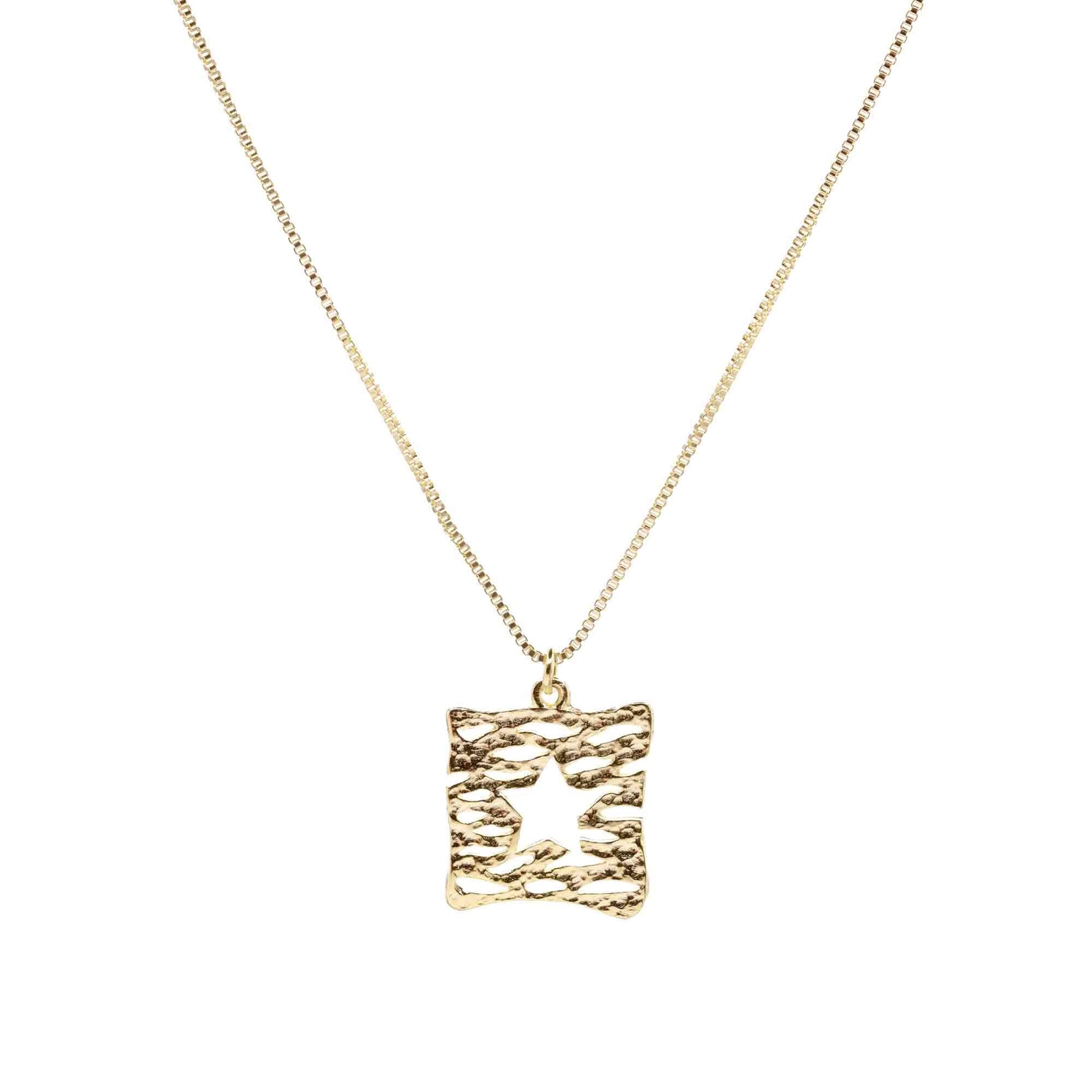 Collar Enchapado en Oro Placa Estrella Martillada y Satinada