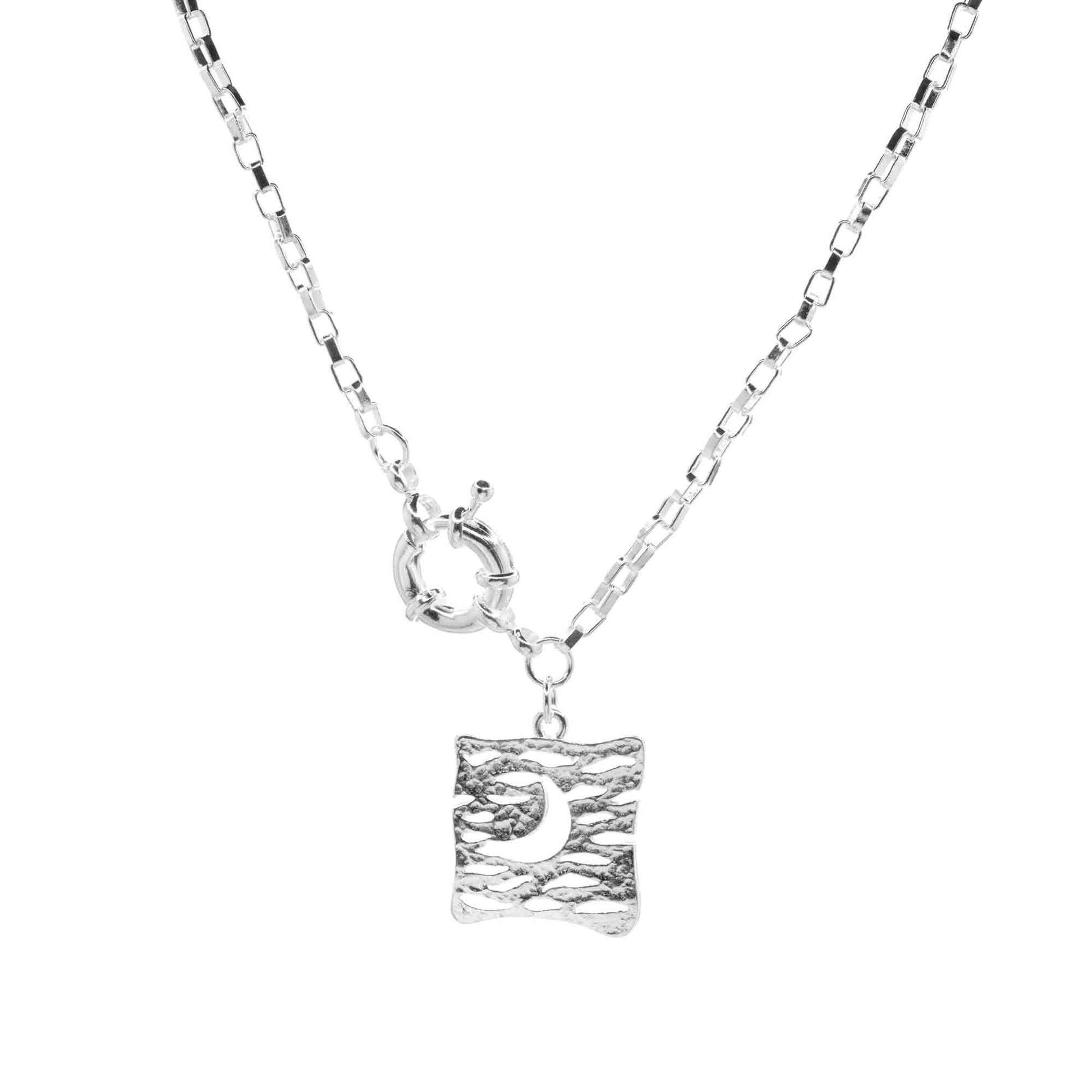 Collar Enchapado en Plata Broche Timón con Placa Mar y Luna