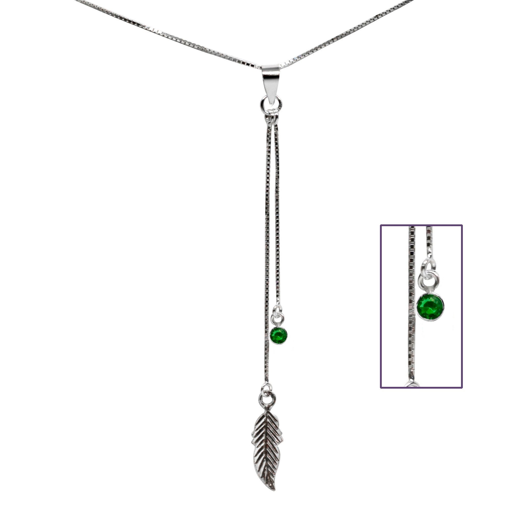 Collar Pluma Colgante Circón Verde