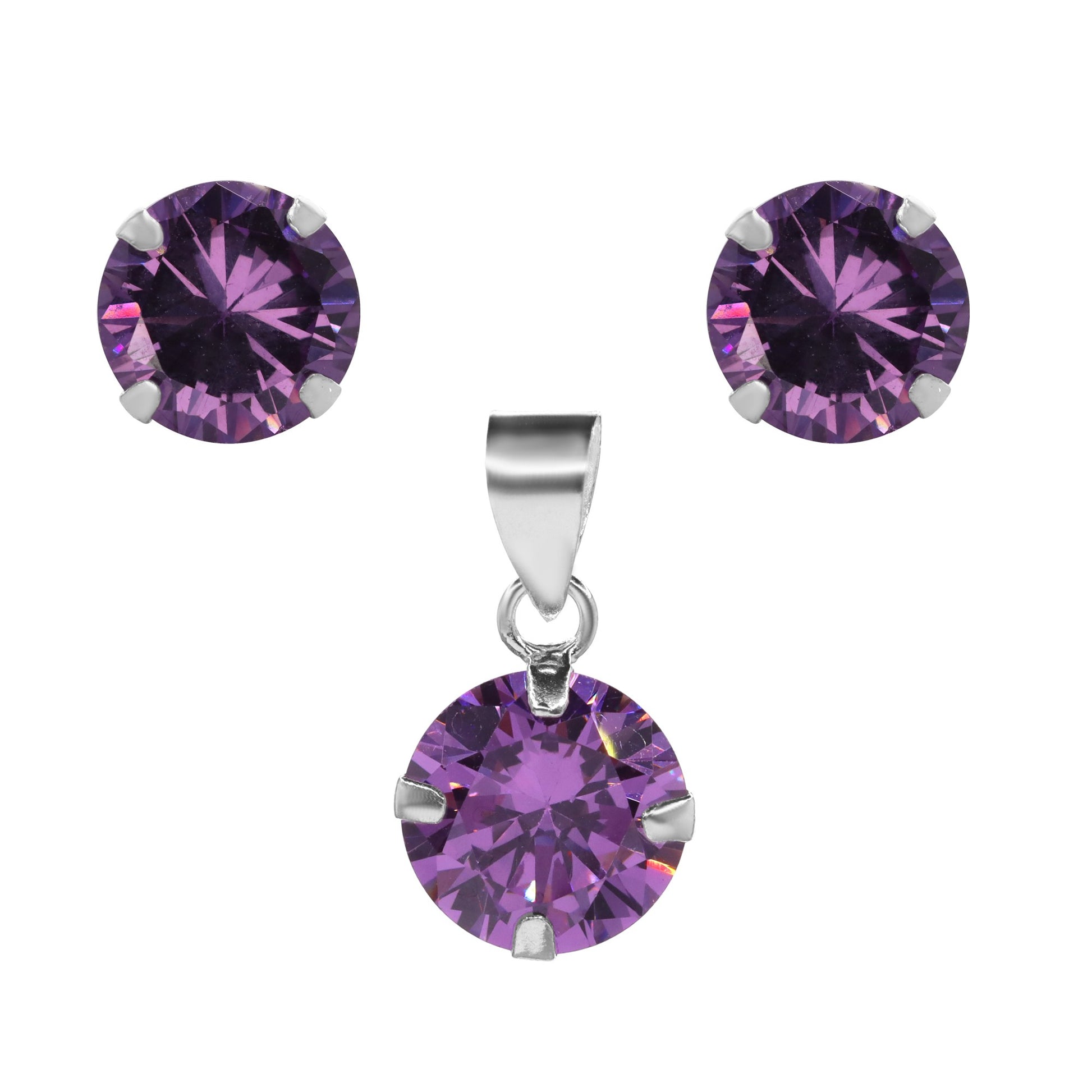 Conjunto de Plata 925 Circón Amatista. Peso 2,6 Gramos Aprox.