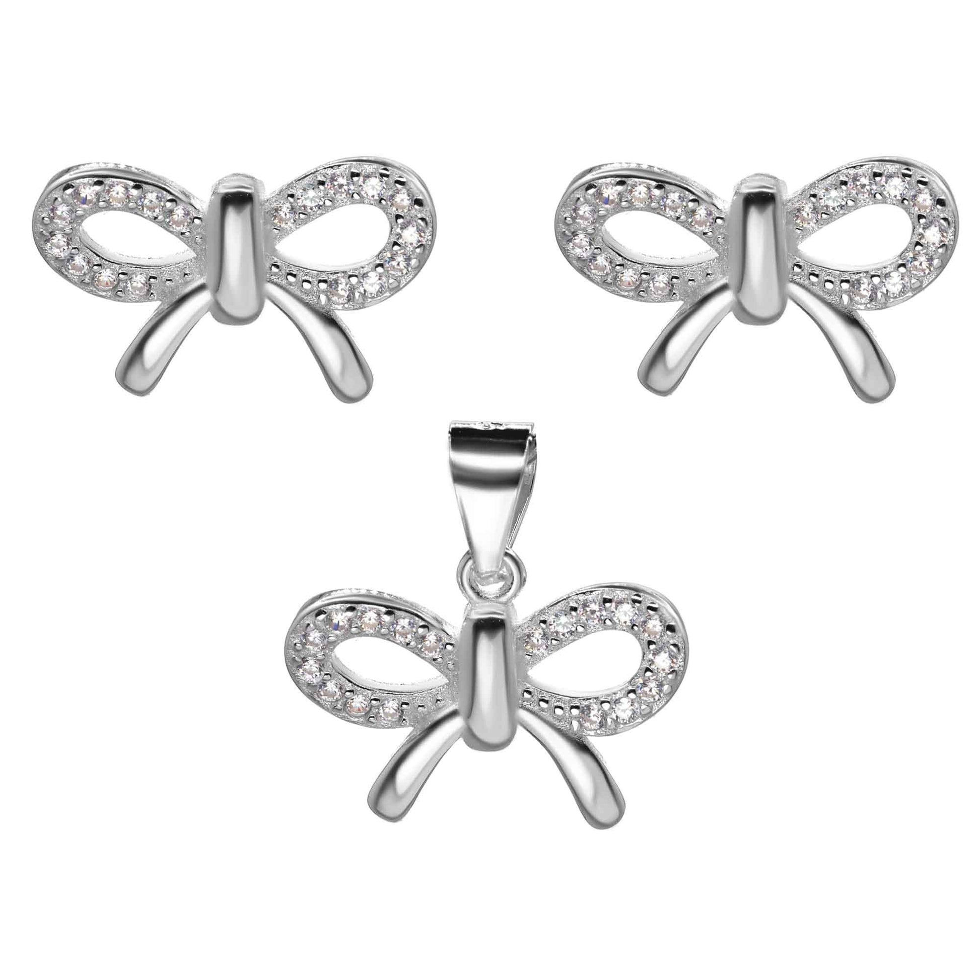 Conjunto de Plata 925 Estilo Coquette Moños con Circones. Peso 2,21 Gramos Aprox.